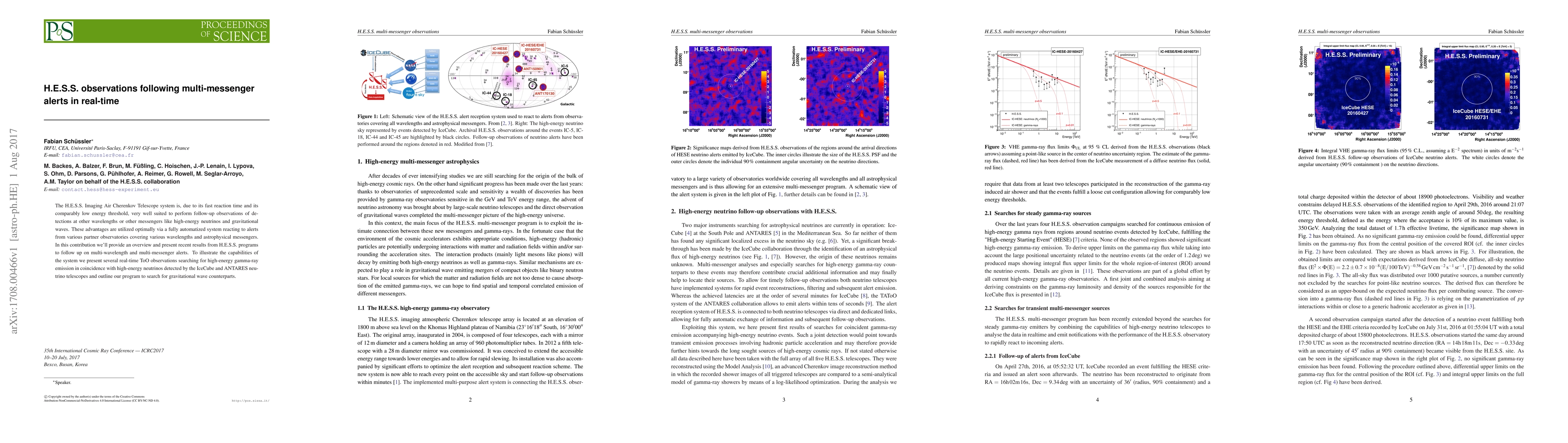 This paper presents the capabilities of the H.E.S.S. Imaging Air Cherenkov Telescope system in following up on multi-messenger alerts in real-time, with a focus on high-energy gamma-ray emission coincident with neutrino detections.