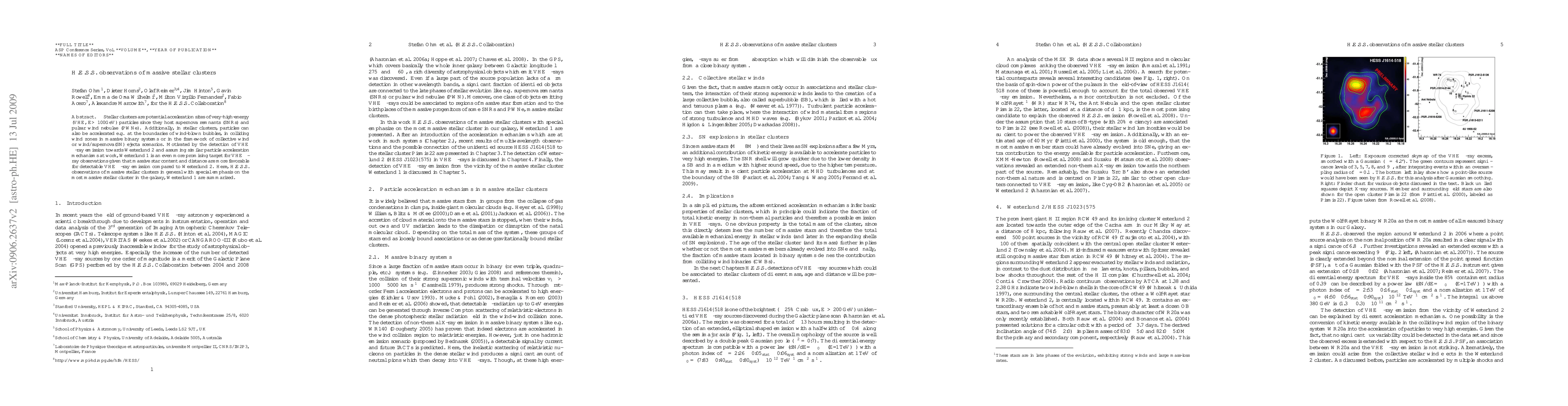 The H.E.S.S. observations explore massive stellar clusters as potential sites for very-high-energy particle acceleration, focusing on Westerlund 1 due to its favorable conditions for detectable VHE gamma-ray emission compared to Westerlund 2. The study highlights various mechanisms that could generate such high-energy particles within these clusters.