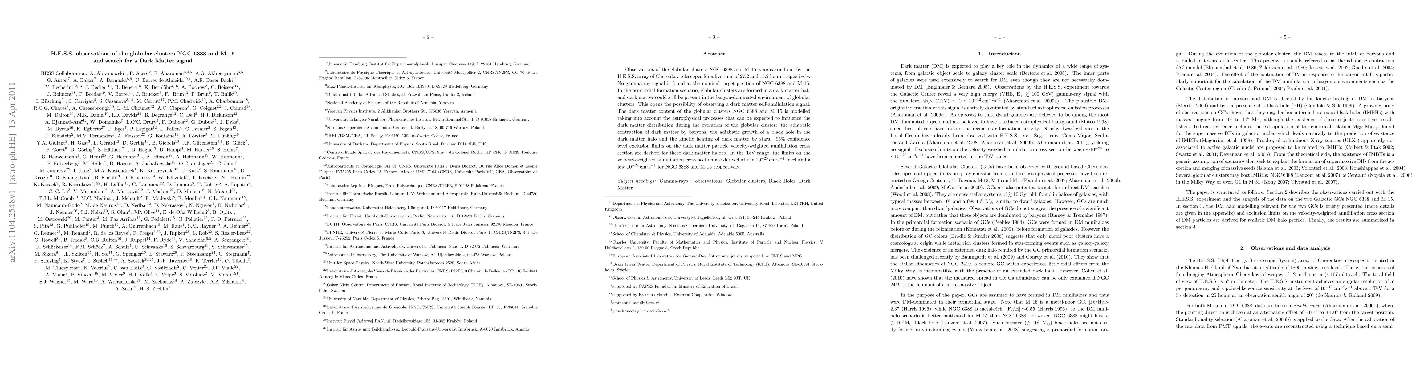 The H.E.S.S. Cherenkov telescope array observed globular clusters NGC 6388 and M 15 for potential dark matter signals, but no gamma-ray signal was detected. The study models the dark matter content in these clusters, deriving exclusion limits on the dark matter annihilation cross section in the TeV range.