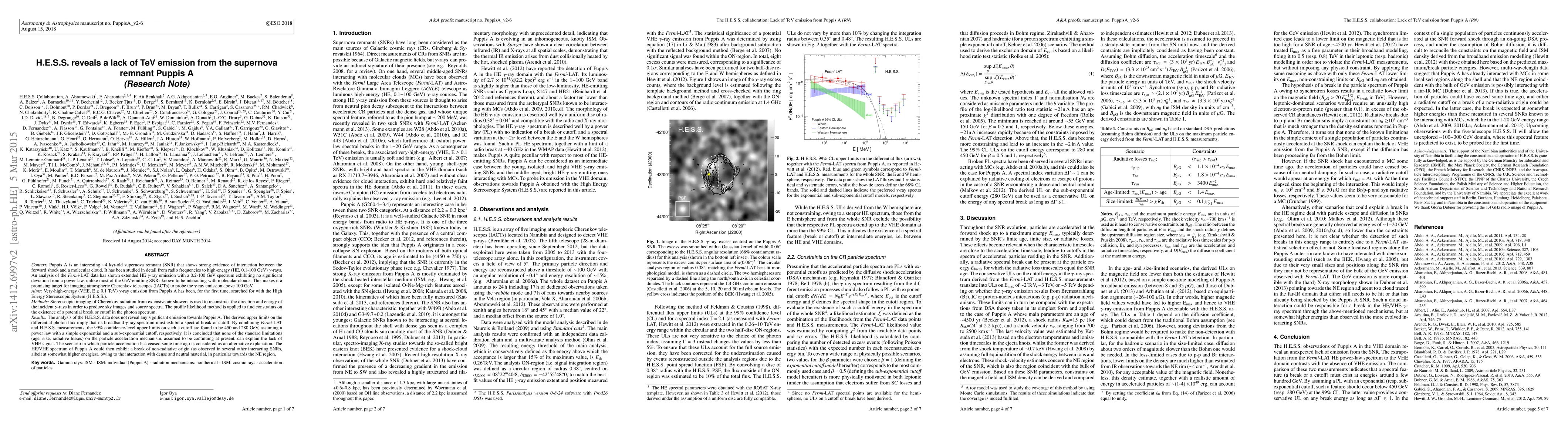 Puppis A is an interesting ~4 kyr-old supernova remnant (SNR) that shows strong evidence of interaction between the forward shock and a molecular cloud. It has been studied in detail from radio frequencies to high-energy (HE, 0.1-100 GeV) gamma-rays. An analysis of the Fermi-LAT data has shown an extended HE gamma-ray emission with a 0.2-100 GeV spectrum exhibiting no significant deviation from a power law, unlike most of the GeV-emitting SNRs known to be interacting with molecular clouds. This makes it a promising target for imaging atmospheric Cherenkov telescopes (IACTs) to probe the gamma-ray emission above 100 GeV. Very-high-energy (VHE, E >= 0.1 TeV) gamma-ray emission from Puppis A is for the first time searched for with the High Energy Stereoscopic System (H.E.S.S.). The analysis of the H.E.S.S. data does not reveal any significant emission towards Puppis A. The derived upper limits on the differential photon flux imply that its broadband gamma-ray spectrum must exhibit a spectral break or cutoff. By combining Fermi-LAT and H.E.S.S. measurements, the 99% confidence level upper limits on such a cutoff are found to be 450 and 280 GeV, assuming a power law with a simple exponential and a sub-exponential cutoff, respectively. It is concluded that none of the standard limitations (age, size, radiative losses) on the particle acceleration mechanism, assumed to be still on-going at present, can explain the lack of VHE signal. The scenario in which particle acceleration has ceased some time ago is considered as an alternative explanation. The HE/VHE spectrum of Puppis A could then exhibit a break of non-radiative origin, (as observed in several other interacting SNRs, albeit at somewhat higher energies) owing to the interaction with dense and neutral material in particular towards the northeastern region.