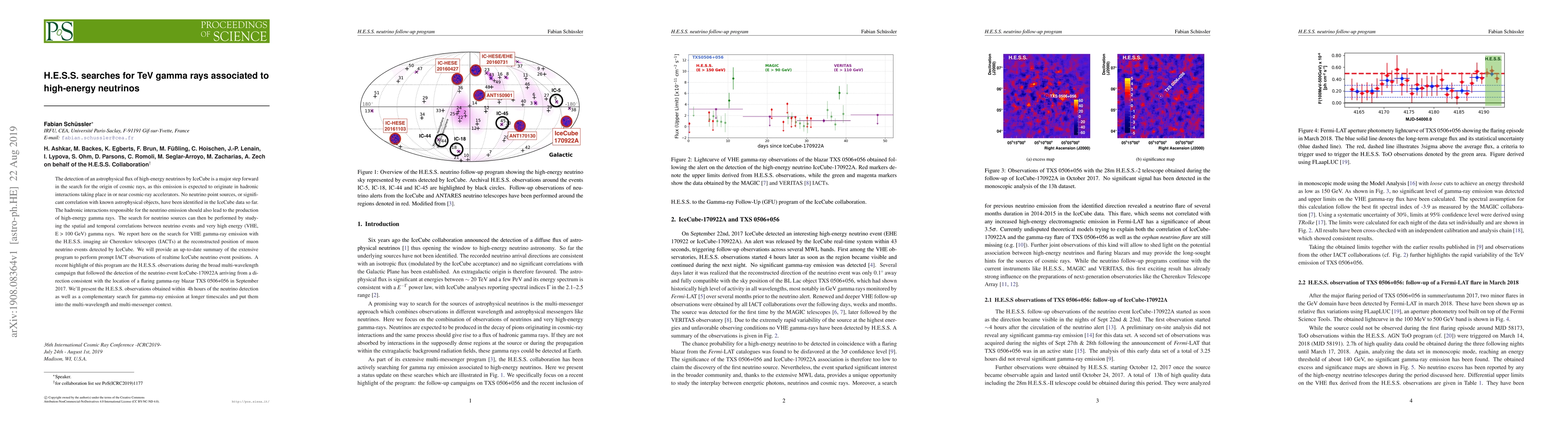 The H.E.S.S. telescopes searched for TeV gamma rays associated with high-energy neutrinos detected by IceCube, finding no significant correlation, but providing insights into the search for cosmic-ray accelerators.
