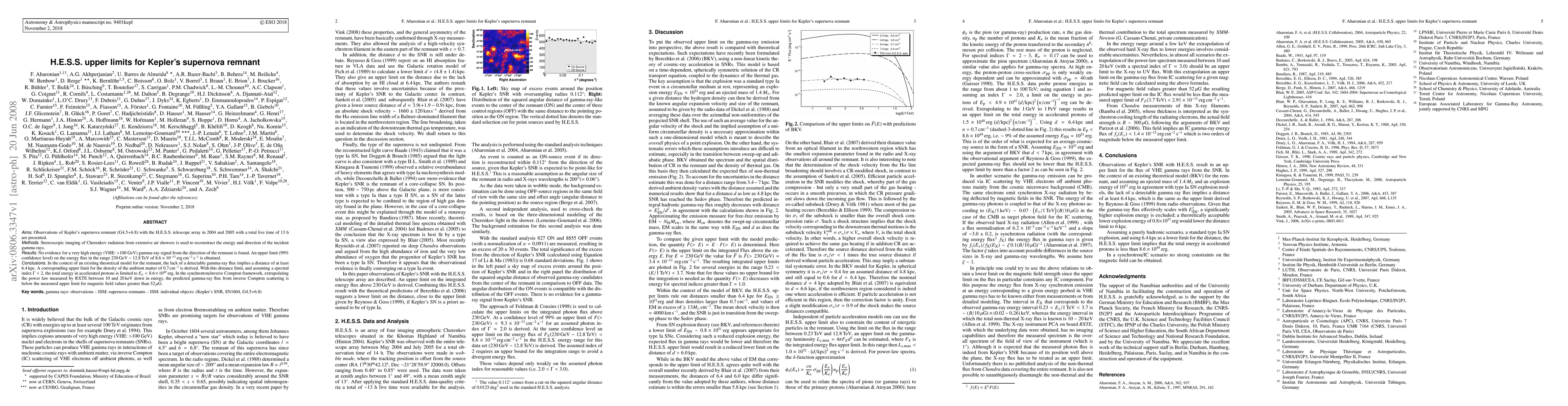Observations of Kepler's supernova remnant were made with the H.E.S.S. telescope array in 2004 and 2005.