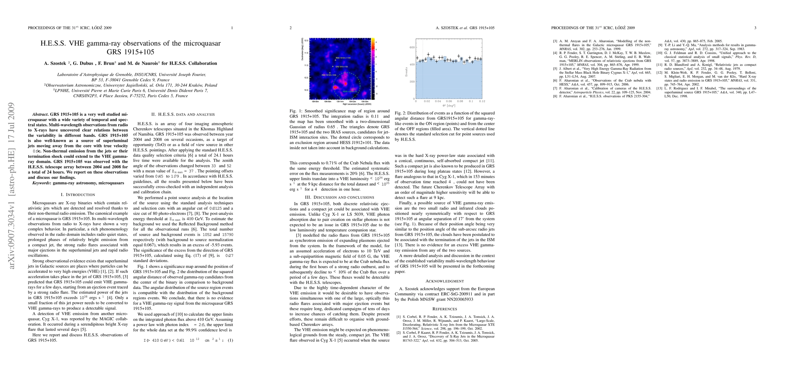The H.E.S.S. telescope array observed the microquasar GRS 1915+105 for 24 hours between 2004 and 2008, seeking VHE gamma-ray emissions potentially linked to its non-thermal jets. No significant VHE gamma-ray signal was detected, contributing to the understanding of the microquasar's high-energy emission mechanisms.