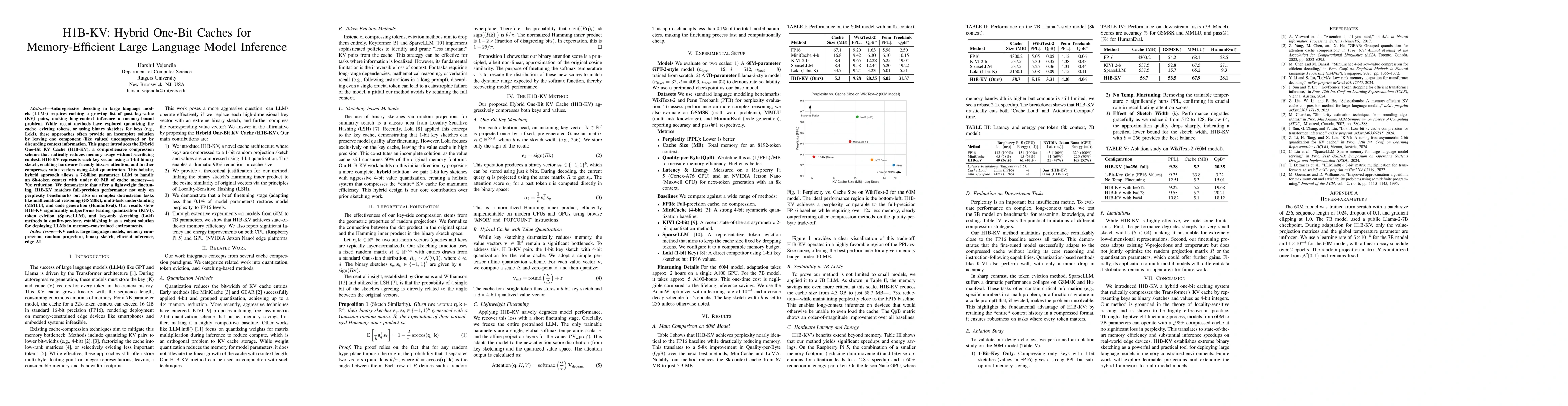 H1B-KV introduces a comprehensive compression scheme that combines 1-bit key sketches with 4-bit value quantization, enabling efficient memory usage without losing context or performance.