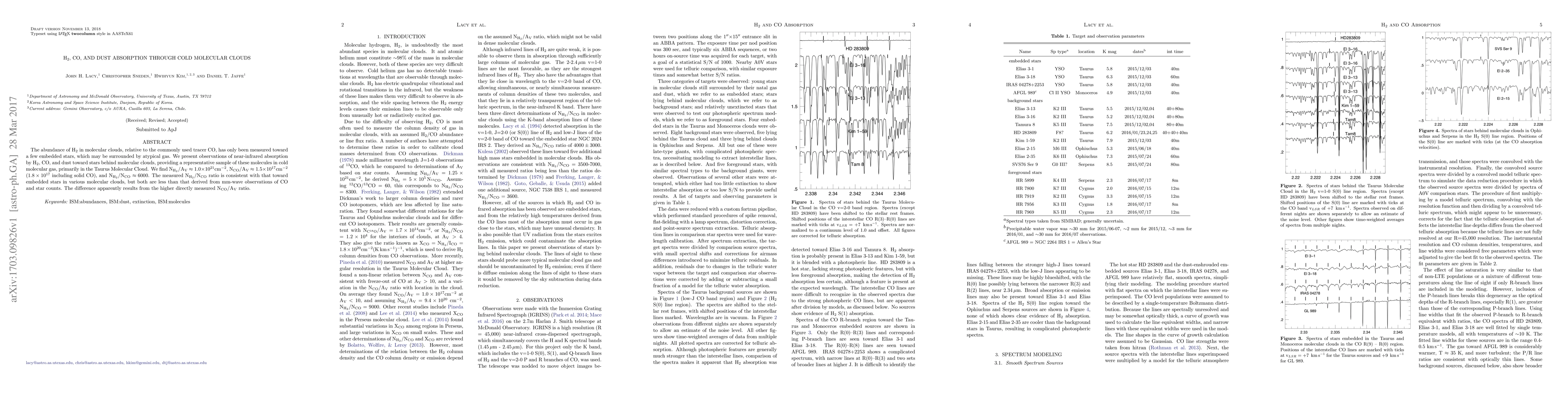 This study measures H2, CO, and dust absorption in cold molecular clouds, finding a representative H2/CO ratio of ~6000 in Taurus, consistent with embedded stars but less than mm-wave observations, suggesting discrepancies arise from a higher CO abundance directly measured.