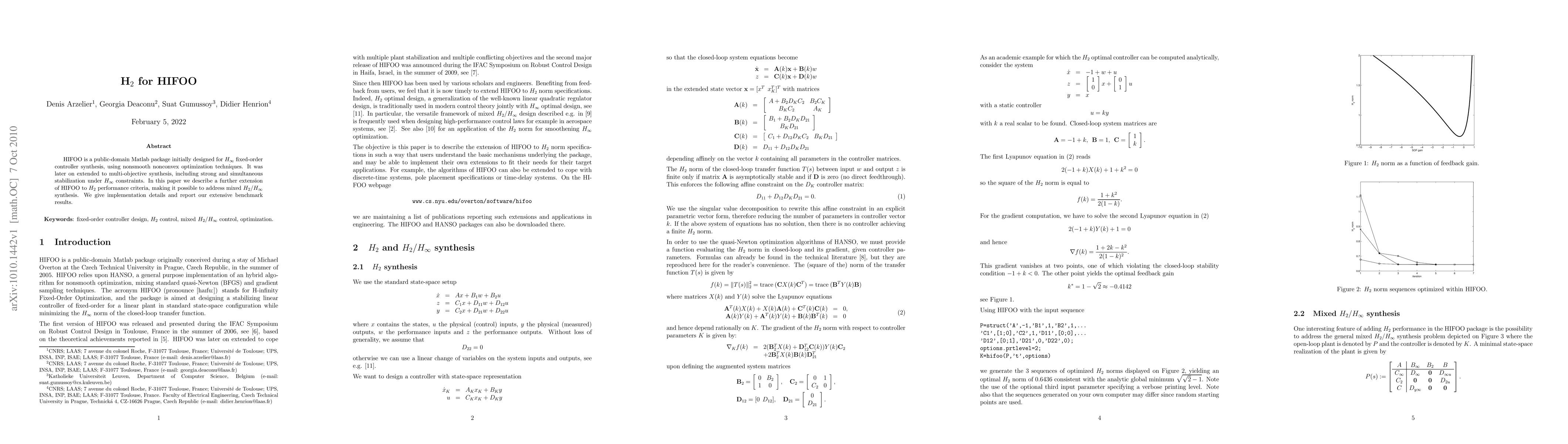 HIFOO now supports H2 performance criteria, enabling mixed H2/H∞ synthesis. The paper details the implementation and presents benchmark results from extensive testing.