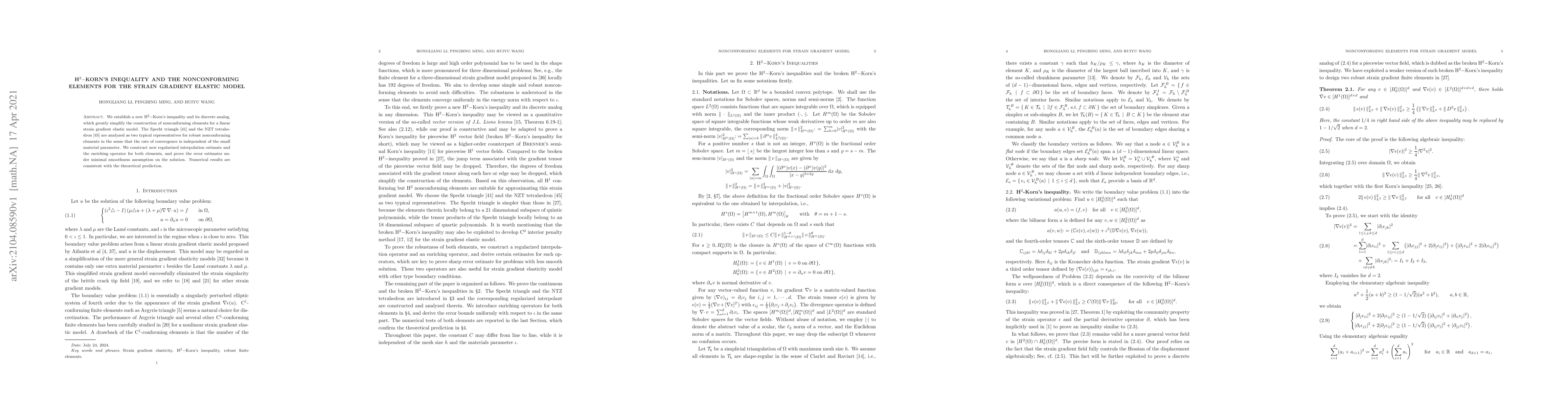 Researchers develop a new inequality that simplifies the construction of nonconforming elements for a strain gradient elastic model, leading to improved convergence rates and consistent numerical results with theoretical predictions.