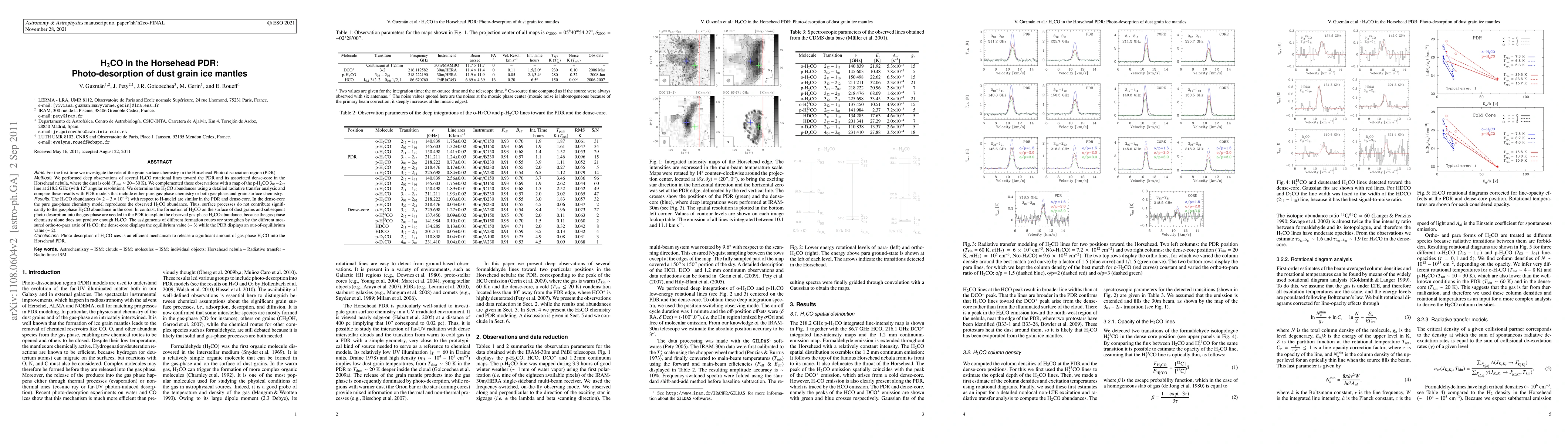 Aims: For the first time we investigate the role of the grain surface chemistry in the Horsehead Photo-dissociation region (PDR). Methods: We performed deep observations of several H2CO rotational lines toward the PDR and its associated dense-core in the Horsehead nebula, where the dust is cold ($\Td \simeq 20-30$ K). We complemented these observations with a map of the p-H2CO $~3_{03}-2_{02}$ line at 218.2 GHz (with 12" angular resolution). We determine the H2CO abundances using a detailed radiative transfer analysis and compare these results with PDR models that include either pure gas-phase chemistry or both gas-phase and grain surface chemistry. Results: The H2CO abundances ($\simeq 2-3 \times 10^{-10}$) with respect to H-nuclei are similar in the PDR and dense-core. In the dense-core the pure gas-phase chemistry model reproduces the observed H2CO abundance. Thus, surface processes do not contribute significantly to the gas-phase H2CO abundance in the core. In contrast, the formation of H2CO on the surface of dust grains and subsequent photo-desorption into the gas-phase are needed in the PDR to explain the observed gas-phase H2CO abundance, because the gas-phase chemistry alone does not produce enough H2CO. The assignments of different formation routes are strengthen by the different measured ortho-to-para ratio of H2CO: the dense-core displays the equilibrium value ($\sim3$) while the PDR displays an out-of-equilibrium value ($\sim2$). Conclusions: Photo-desorption of H2CO ices is an efficient mechanism to release a significant amount of gas-phase H2CO into the Horsehead PDR.