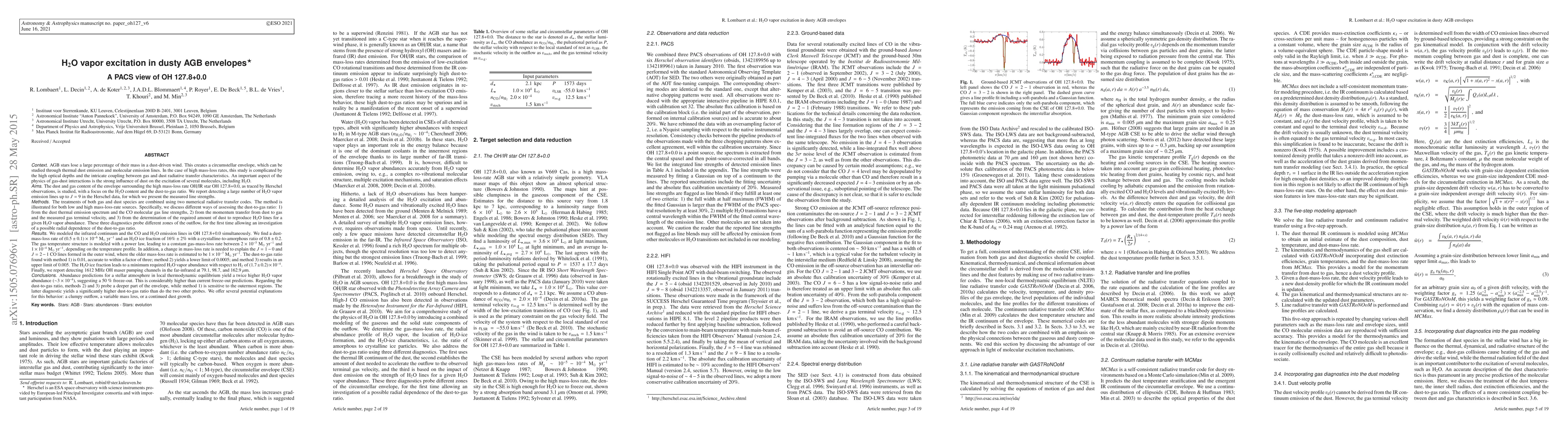 Context: AGB stars lose a large percentage of their mass in a dust-driven wind. This creates a circumstellar envelope, which can be studied through thermal dust emission and molecular emission lines. In the case of high mass-loss rates, this study is complicated by the high optical depths and the intricate coupling between gas and dust radiative transfer characteristics. An important aspect of the physics of gas-dust interactions is the strong influence of dust on the excitation of several molecules, including H2O. Aims: The dust and gas content of the envelope surrounding the high mass-loss rate OH/IR star OH 127.8+0.0, as traced by Herschel observations, is studied, with a focus on the H2O content and the dust-to-gas ratio. We report detecting a large number of H2O vapor emission lines up to J = 9 in the Herschel data, for which we present the measured line strengths. Methods: The treatments of both gas and dust species are combined using two numerical radiative transfer codes. The method is illustrated for both low and high mass-loss-rate sources. Specifically, we discuss different ways of assessing the dust-to-gas ratio: 1) from the dust thermal emission spectrum and the CO molecular gas line strengths; 2) from the momentum transfer from dust to gas and the measured gas terminal velocity; and 3) from the determination of the required amount of dust to reproduce H2O lines for a given H2O vapor abundance. These three diagnostics probe different zones of the outflow, for the first time allowing an investigation of a possible radial dependence of the dust-to-gas ratio. Results: ... Continued in article.