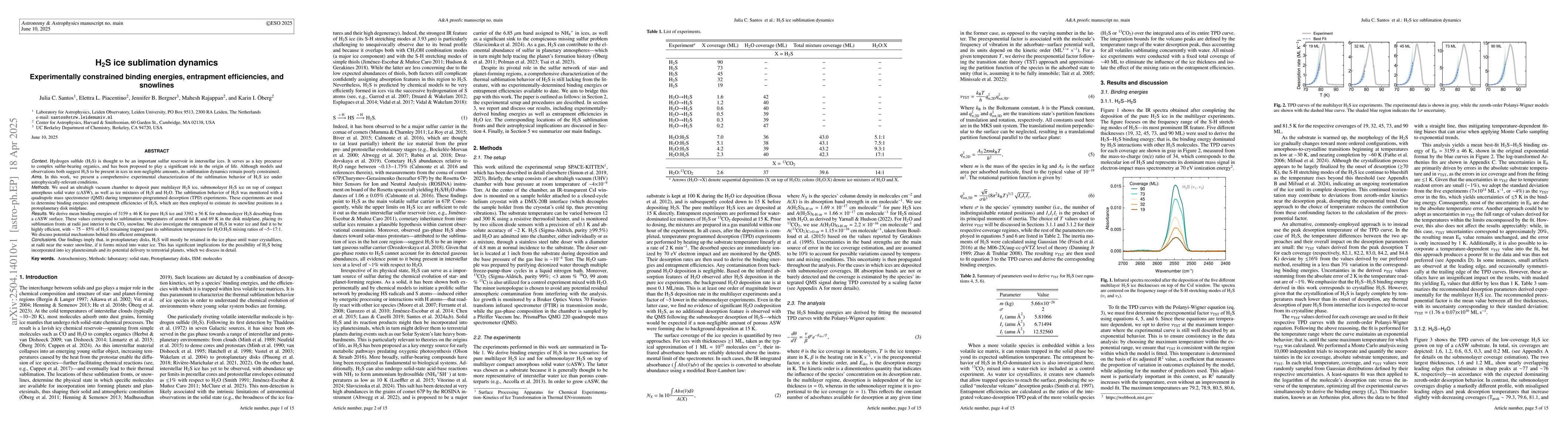 The study characterized H2S ice sublimation behavior using temperature-programmed desorption (TPD) experiments with a quadrupole mass spectrometer (QMS) under astrophysically-relevant conditions.