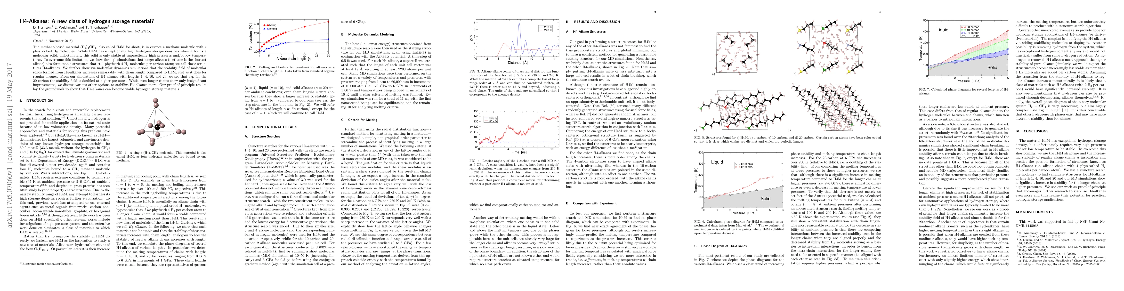 This paper explores the potential of H4-alkanes, a new class of methane-based materials that physisorb hydrogen molecules, as hydrogen storage materials. While H4M (methane with four physisorbed H$_2$ molecules) has high storage density, it is unstable at practical conditions. The study finds that longer alkanes form stable H4-alkane structures that can physisorb H$_2$ and show improved stability with increasing chain length.