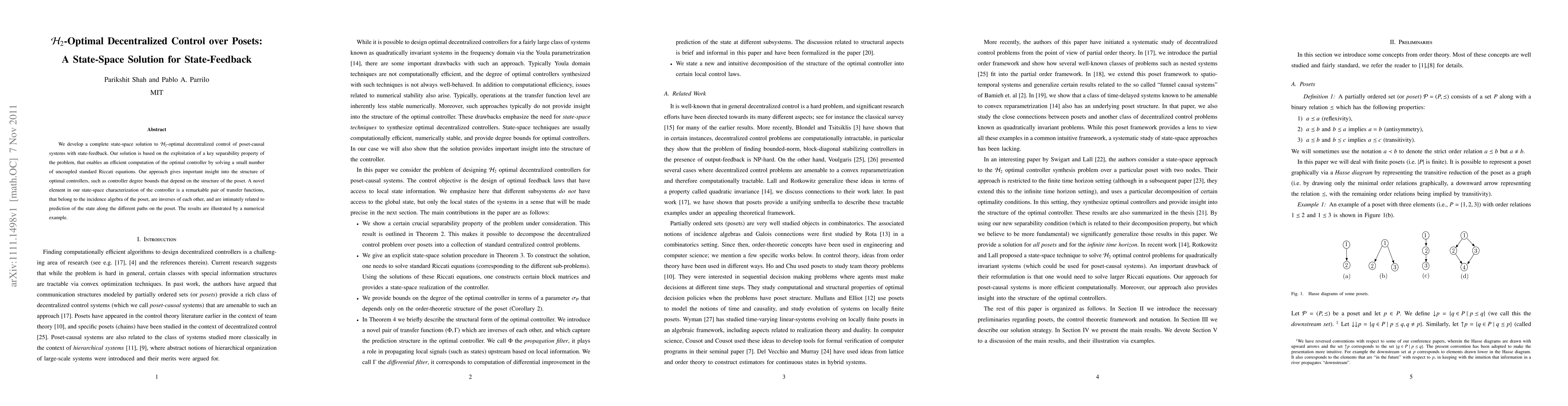 This paper presents a state-space solution for H₂-optimal decentralized control in poset-causal systems using state-feedback, leveraging a separability property to efficiently compute optimal controllers via uncoupled Riccati equations, revealing insights into controller structure and introducing a unique pair of transfer functions related to state prediction paths.