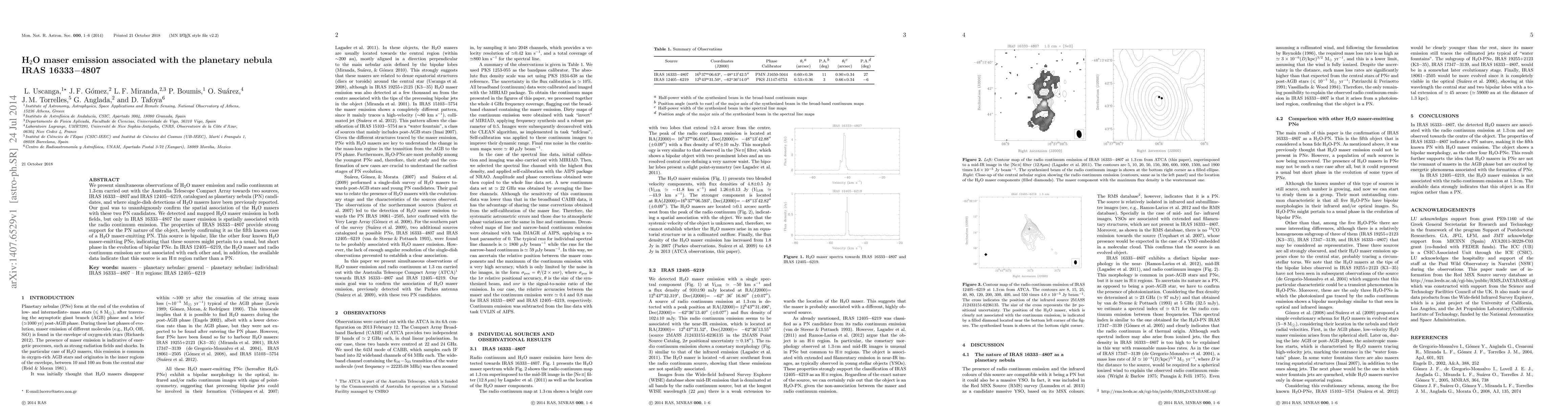 This study confirms the spatial association of H$_2$O maser emission with the planetary nebula IRAS 16333$-$4807, establishing it as the fifth known H$_2$O maser-emitting PN. In contrast, IRAS 12405$-$6219 is identified as an H II region, not a PN, based on the lack of association between its H$_2$O maser and radio continuum emissions.