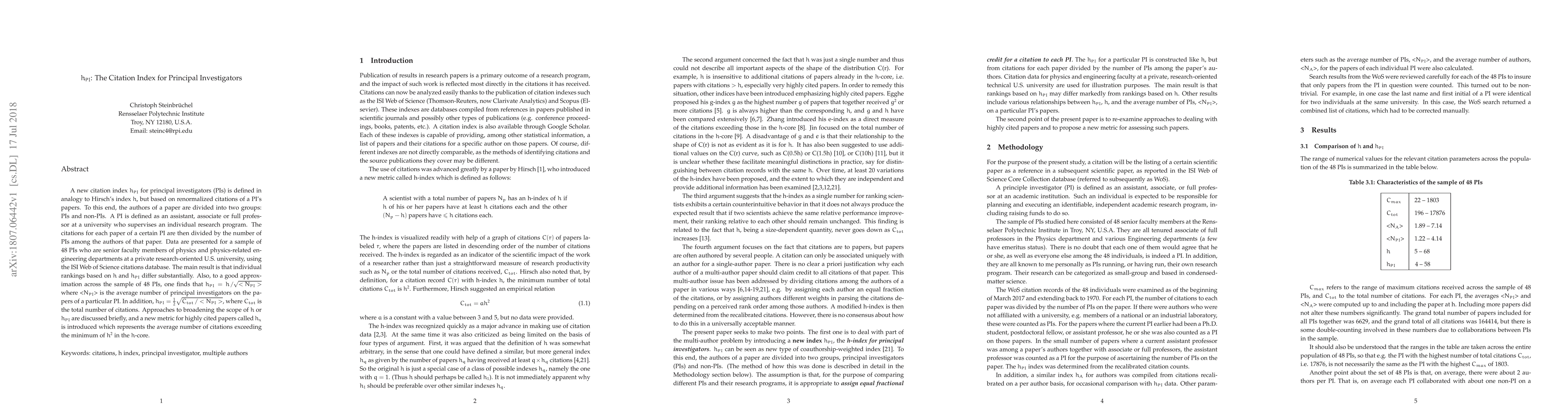 sample of 48 PIs, one finds that $h_{PI} = h \,/ \sqrt{