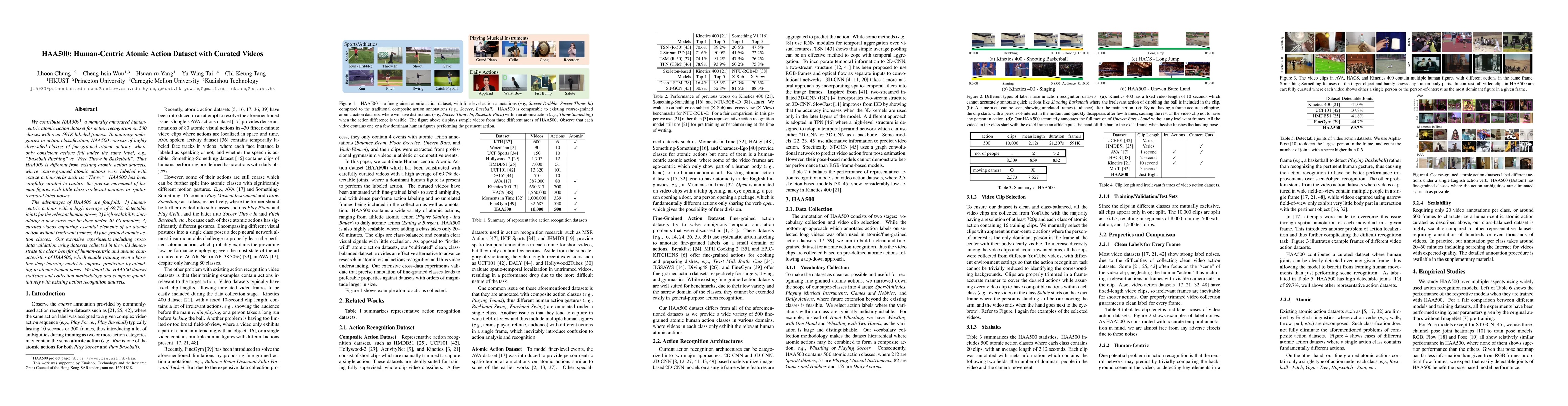We contribute HAA500, a manually annotated human-centric atomic action dataset for action recognition on 500 classes with over 591K labeled frames. To minimize ambiguities in action classification, HAA500 consists of highly diversified classes of fine-grained atomic actions, where only consistent actions fall under the same label, e.g., "Baseball Pitching" vs "Free Throw in Basketball". Thus HAA500 is different from existing atomic action datasets, where coarse-grained atomic actions were labeled with coarse action-verbs such as "Throw". HAA500 has been carefully curated to capture the precise movement of human figures with little class-irrelevant motions or spatio-temporal label noises. The advantages of HAA500 are fourfold: 1) human-centric actions with a high average of 69.7% detectable joints for the relevant human poses; 2) high scalability since adding a new class can be done under 20-60 minutes; 3) curated videos capturing essential elements of an atomic action without irrelevant frames; 4) fine-grained atomic action classes. Our extensive experiments including cross-data validation using datasets collected in the wild demonstrate the clear benefits of human-centric and atomic characteristics of HAA500, which enable training even a baseline deep learning model to improve prediction by attending to atomic human poses. We detail the HAA500 dataset statistics and collection methodology and compare quantitatively with existing action recognition datasets.