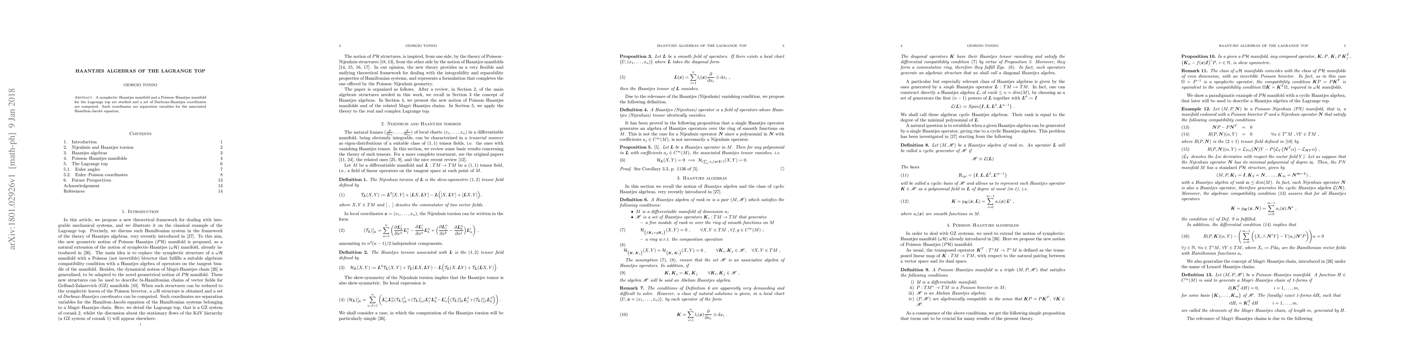 This paper investigates symplectic-Haantjes and Poisson-Haantjes manifolds for the Lagrange top, computing a set of Darboux-Haantjes coordinates that serve as separation variables for the Hamilton-Jacobi equation. These coordinates provide a new perspective on the dynamics of the Lagrange top.