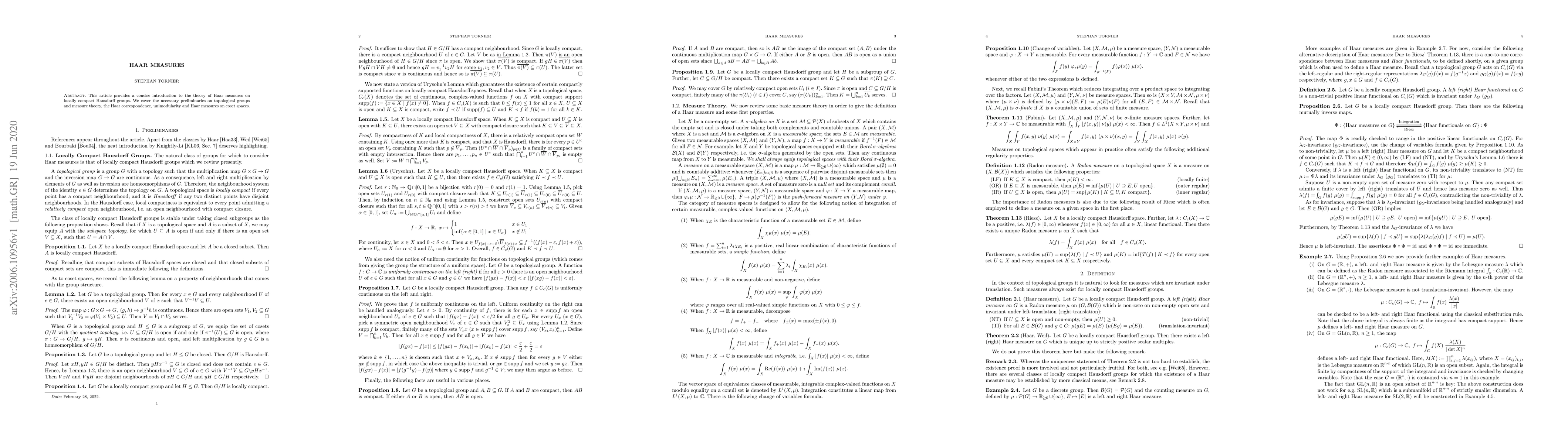This paper introduces Haar measures on locally compact Hausdorff groups, covering foundational concepts in topological groups and measure theory, and exploring the Haar correspondence and unimodularity, along with Haar measures on coset spaces.