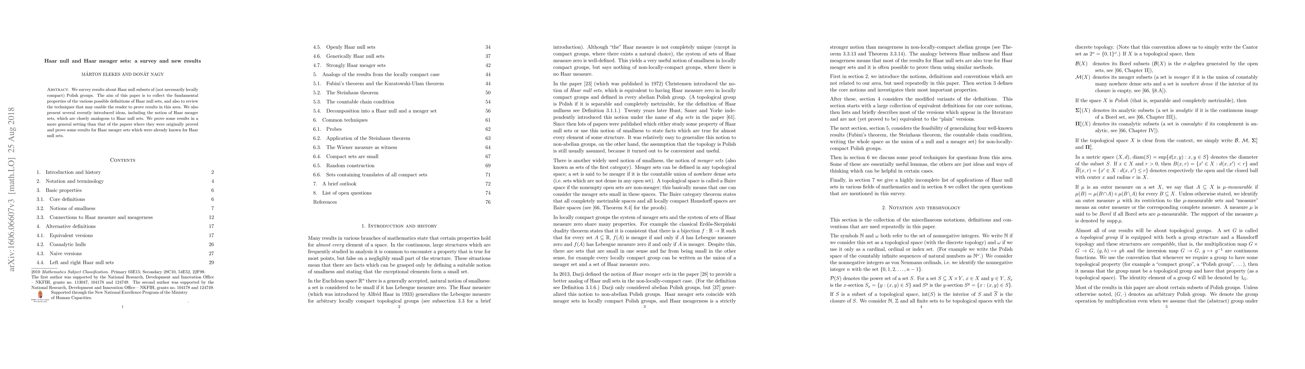 This paper surveys the properties and definitions of Haar null sets in Polish groups, along with techniques to prove related results. It introduces Haar meager sets, analogous to Haar null sets, and extends some known results to this new context.