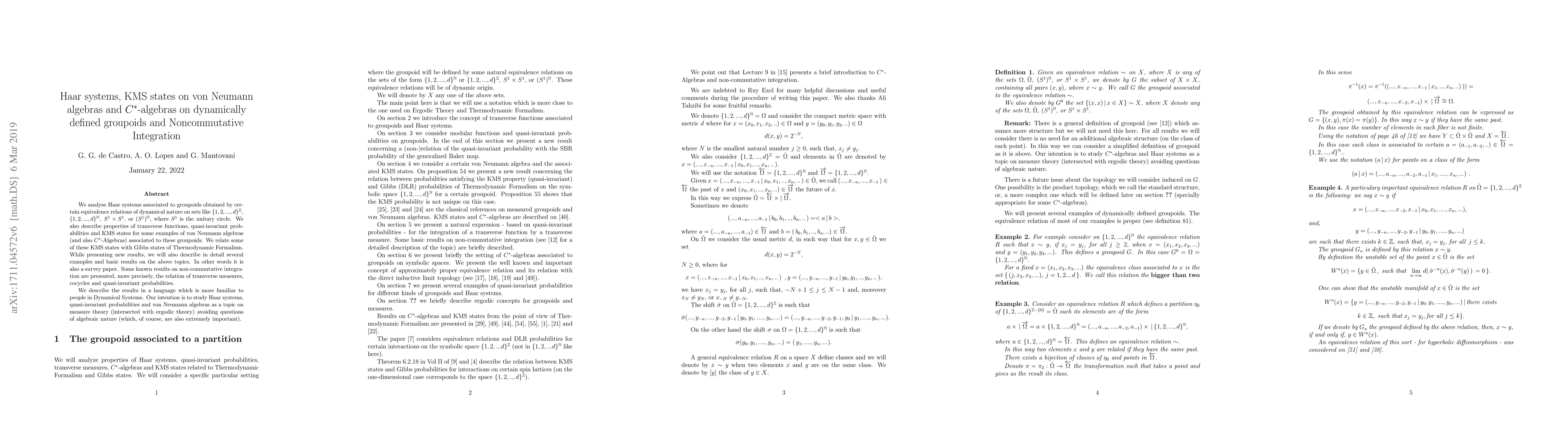 This paper analyzes Haar systems linked to dynamical groupoids, exploring properties of KMS states, quasi-invariant probabilities, and noncommutative integration. It provides a survey of results in the context of dynamical systems, focusing on measure-theoretic aspects rather than algebraic ones.
