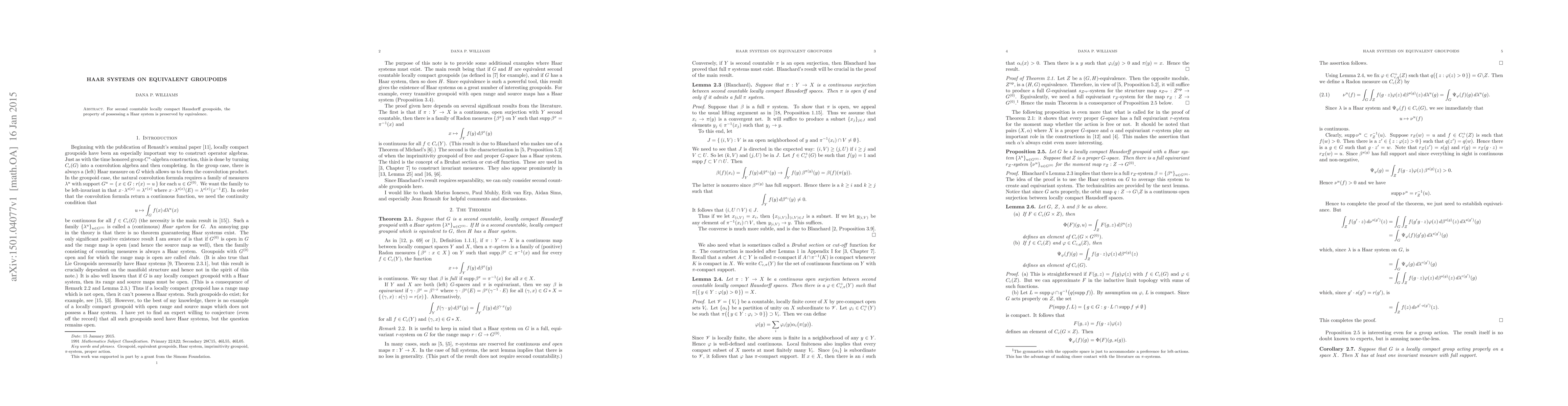 Summary: This paper demonstrates that second countable locally compact Hausdorff groupoids maintain the property of having a Haar system when they are equivalent. The preservation of Haar systems under equivalence is established.