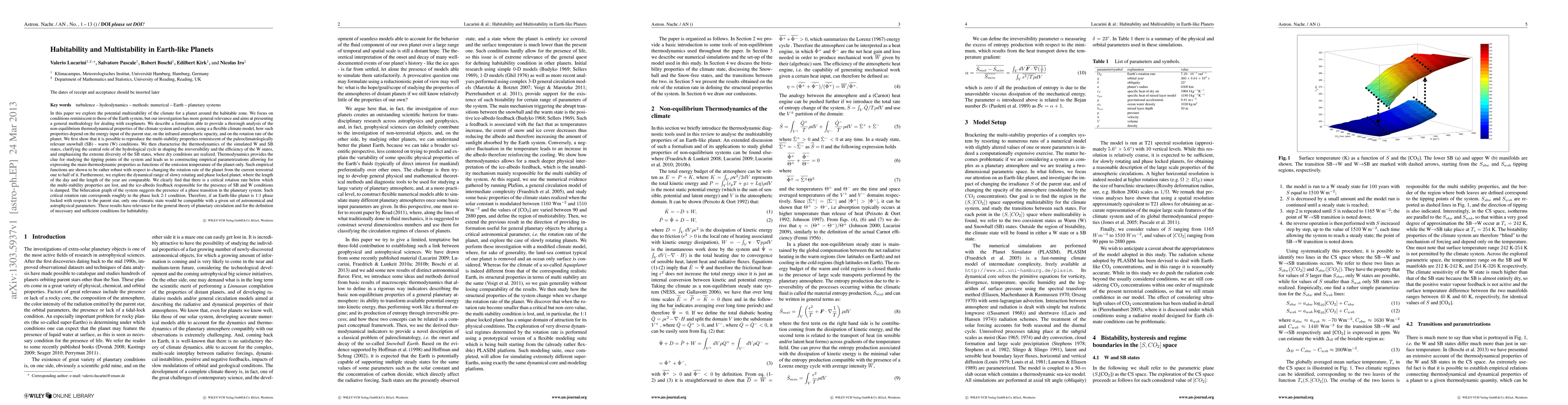 We explore the potential multistability of the climate for a planet around the habitable zone. We focus on conditions reminiscent to those of the Earth system, but our investigation aims at presenting a general methodology for dealing with exoplanets. We provide a thorough analysis of the non-equilibrium thermodynamical properties of the climate system and explore, using a a flexible climate model, how such properties depend on the energy input of the parent star, on the infrared atmospheric opacity, and on the rotation rate. It is possible to reproduce the multi-stability properties reminiscent of the paleoclimatologically relevant snowball (SB) - warm (W) conditions. We then study the thermodynamics of the W and SB states, clarifying the role of the hydrological cycle in shaping the irreversibility and the efficiency of the W states, and emphasizing the extreme diversity of the SB states, where dry conditions are realized. Thermodynamics provides the clue for studying the tipping points of the system and leads us to constructing parametrizations where the main thermodynamic properties are expressed as functions of the emission temperature of the planet only. Such functions are rather robust with respect to changing the rotation rate of the planet from the current terrestrial one to half of it. We then explore the dynamical range of slowy rotating and phase locked planets. There is a critical rotation rate below which the multi-stability properties are lost. Such critical rotation rate corresponds roughly to the phase lock 2:1 condition. Therefore, if an Earth-like planet is 1:1 phase locked with respect to the parent star, only one climatic state would be compatible with a given set of astronomical and astrophysical parameters. These results have relevance for the general theory of planetary circulation and for the definition of necessary and sufficient conditions for habitability.