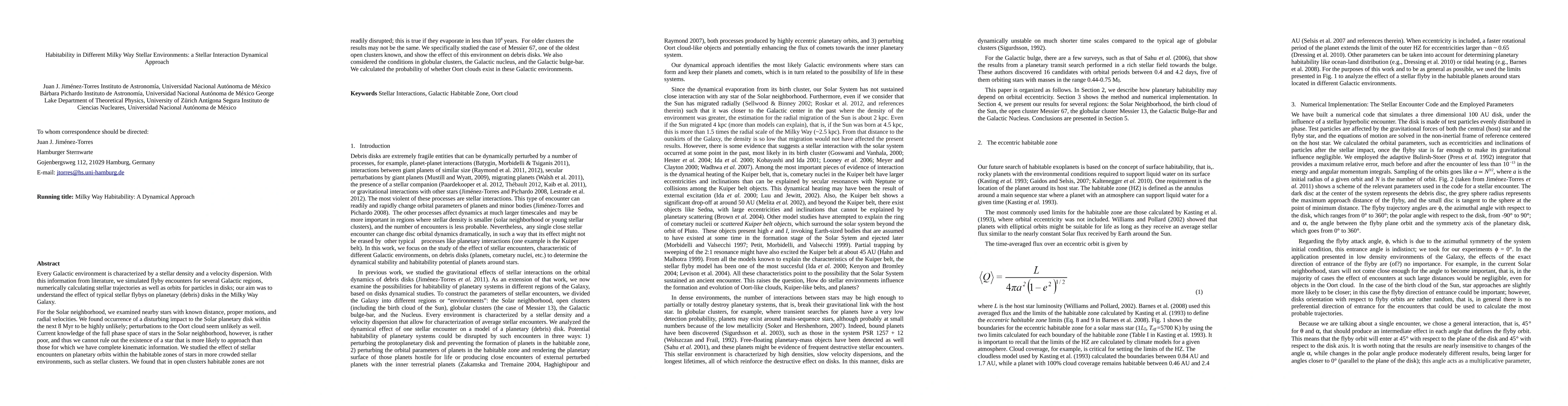 A study simulates stellar flybys on planetary disks in the Milky Way Galaxy, finding that disruptions to habitable zones are unlikely for nearby stars but may occur in crowded environments like open clusters.
