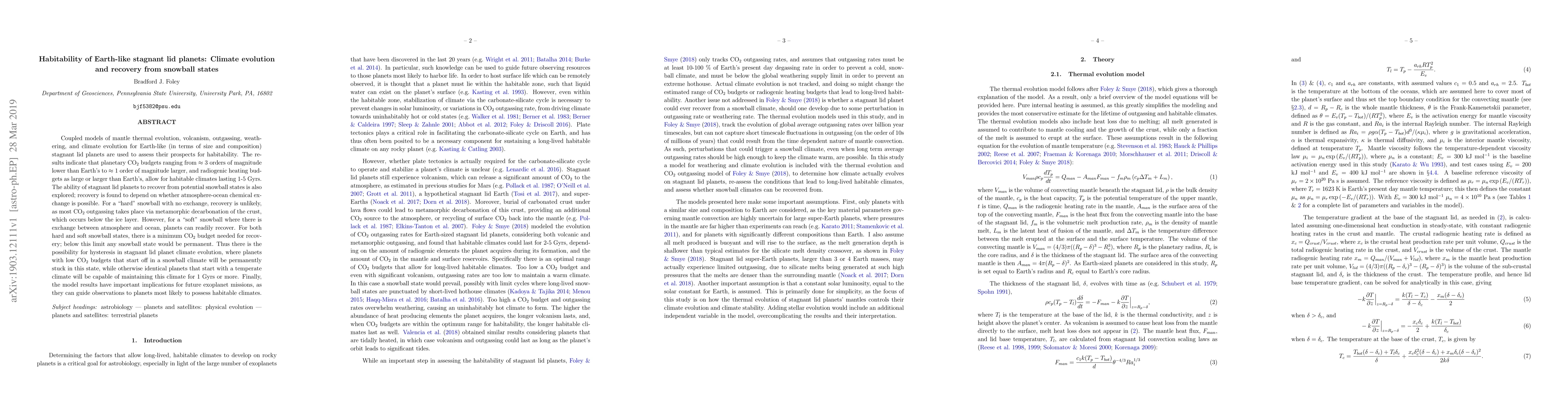 The study presents a comprehensive model that couples mantle thermal evolution, volcanism, outgassing, weathering, and climate evolution to assess habitability of Earth-like stagnant lid planets.