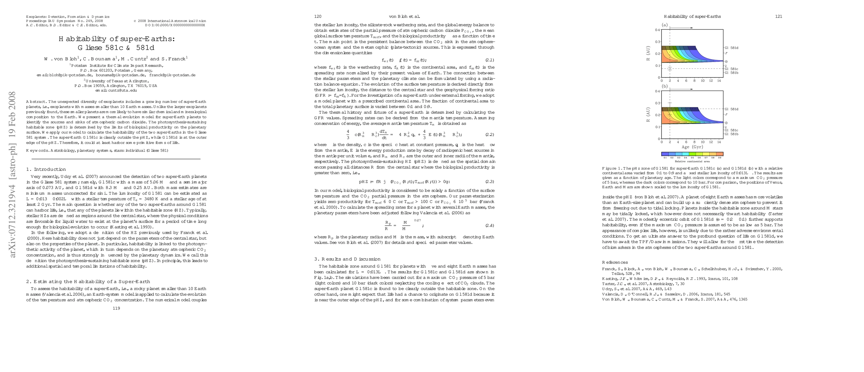 This paper explores the habitability of super-Earths, specifically Gliese 581c and 581d, using a thermal evolution model to assess atmospheric carbon dioxide levels. While Gl 581c lies outside the photosynthesis-sustaining habitable zone, Gl 581d resides at its outer edge, potentially supporting primitive life forms.