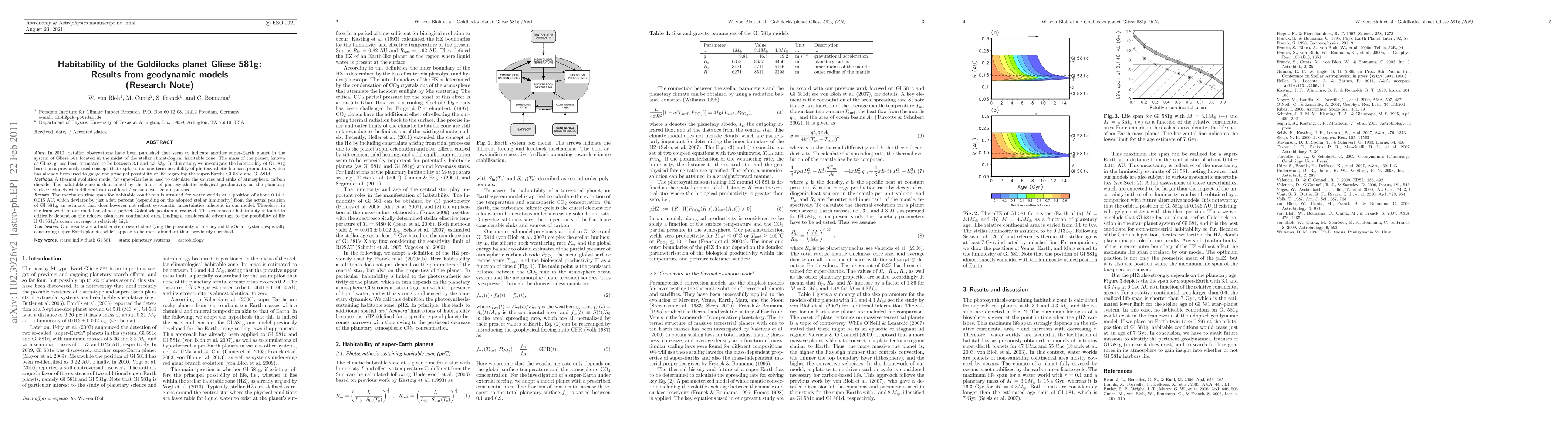 This study explores the habitability of the super-Earth Gliese 581g using geodynamic models, finding that its position within the habitable zone and high ocean coverage significantly enhance the potential for life. The research concludes that Gliese 581g's conditions are nearly ideal for sustaining photosynthetic biomass, suggesting a promising possibility for life beyond the Solar System.
