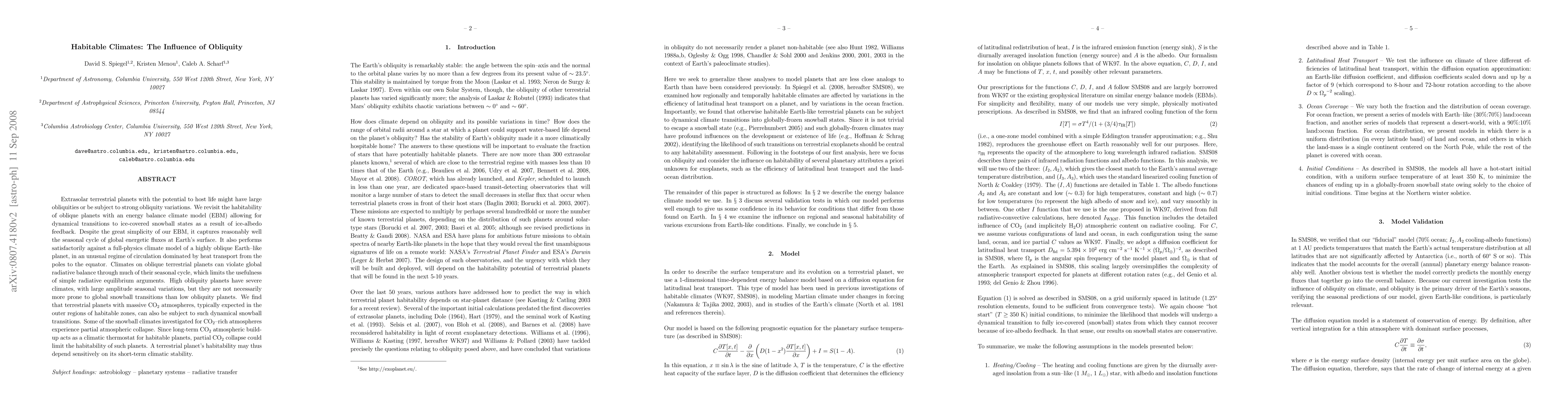 This paper examines the habitability of terrestrial planets with high obliquity using a simple energy balance climate model, finding that while such planets experience extreme seasonal variations, they are not necessarily more prone to snowball states than low obliquity planets. It also highlights that planets with massive CO2 atmospheres may face partial atmospheric collapse, which could limit their long-term habitability.