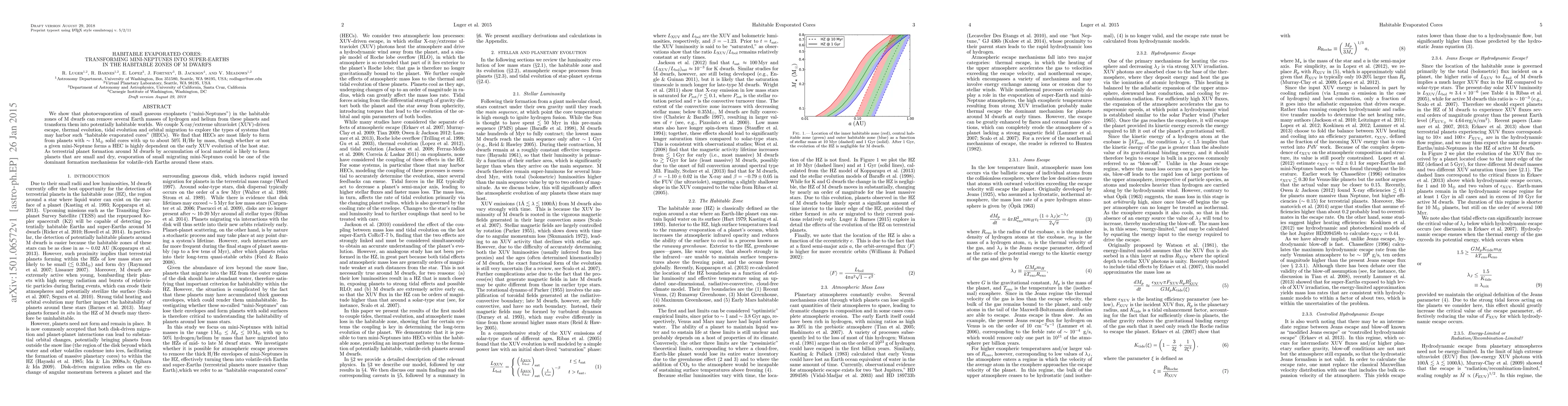 This paper explores how photoevaporation of mini-Neptunes in M dwarf habitable zones can strip away their gaseous envelopes, leaving behind potentially habitable "habitable evaporated cores" (HECs) with Earth-like characteristics. The study finds that HECs are most likely to form from planets with small solid cores and significant hydrogen/helium content, influenced by the host star's X-ray/extreme ultraviolet activity.