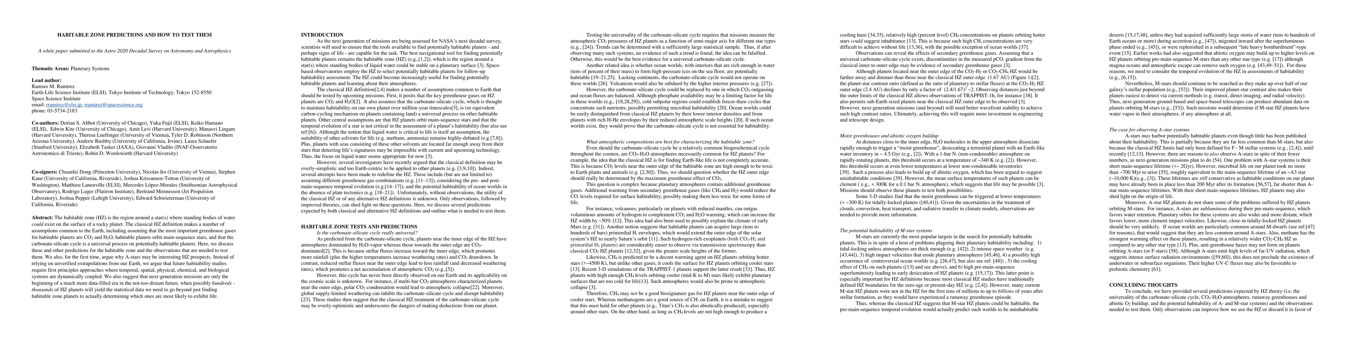 The habitable zone (HZ) is the region around a star(s) where standing bodies of water could exist on the surface of a rocky planet. The classical HZ definition makes a number of assumptions common to the Earth, including assuming that the most important greenhouse gases for habitable planets are CO2 and H2O, habitable planets orbit main-sequence stars, and that the carbonate-silicate cycle is a universal process on potentially habitable planets. Here, we discuss these and other predictions for the habitable zone and the observations that are needed to test them. We also, for the first time, argue why A-stars may be interesting HZ prospects. Instead of relying on unverified extrapolations from our Earth, we argue that future habitability studies require first principles approaches where temporal, spatial, physical, chemical, and biological systems are dynamically coupled. We also suggest that next-generation missions are only the beginning of a much more data-filled era in the not-too-distant future, when possibly hundreds to thousands of HZ planets will yield the statistical data we need to go beyond just finding habitable zone planets to actually determining which ones are most likely to exhibit life.