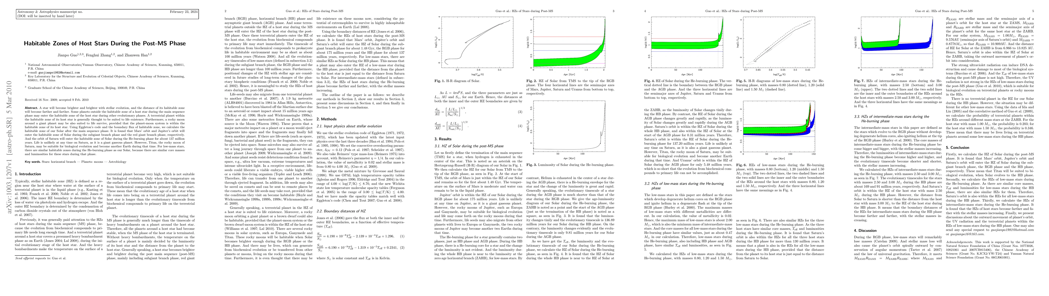 This paper explores how the habitable zones of host stars expand during stellar evolution, potentially allowing planets or moons previously outside the habitable zone to enter it. It calculates that Mars, Jupiter, and Saturn's orbits will enter the Solar System's habitable zone during different post-main sequence phases, with Titan, Saturn's moon, potentially supporting life during the He-burning phase.