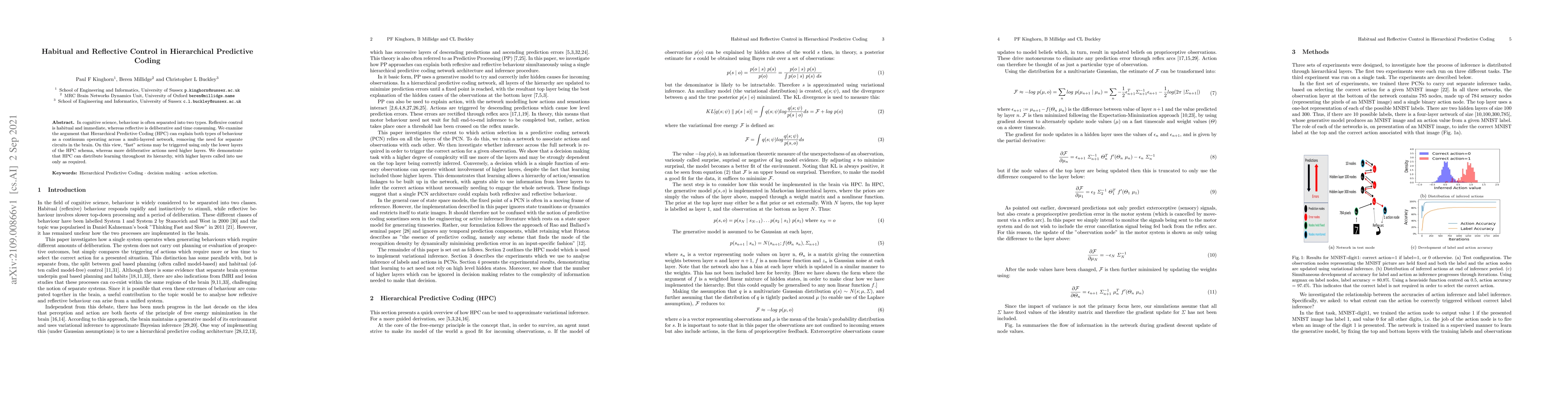 Research suggests Hierarchical Predictive Coding can explain both habitual and reflective control as a continuum across its multi-layered network, distributing learning throughout its hierarchy.
