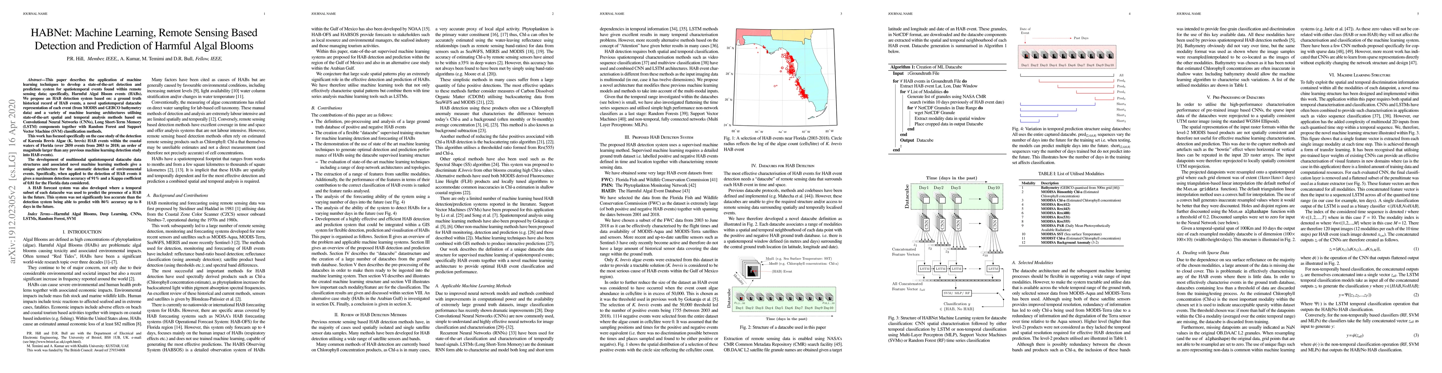 This paper develops a machine learning-based system for detecting and predicting Harmful Algal Blooms (HABs) using remote sensing data and advanced machine learning techniques. The system achieves 91% detection accuracy and 86% predictive accuracy for up to 8 days ahead, significantly improving previous studies.