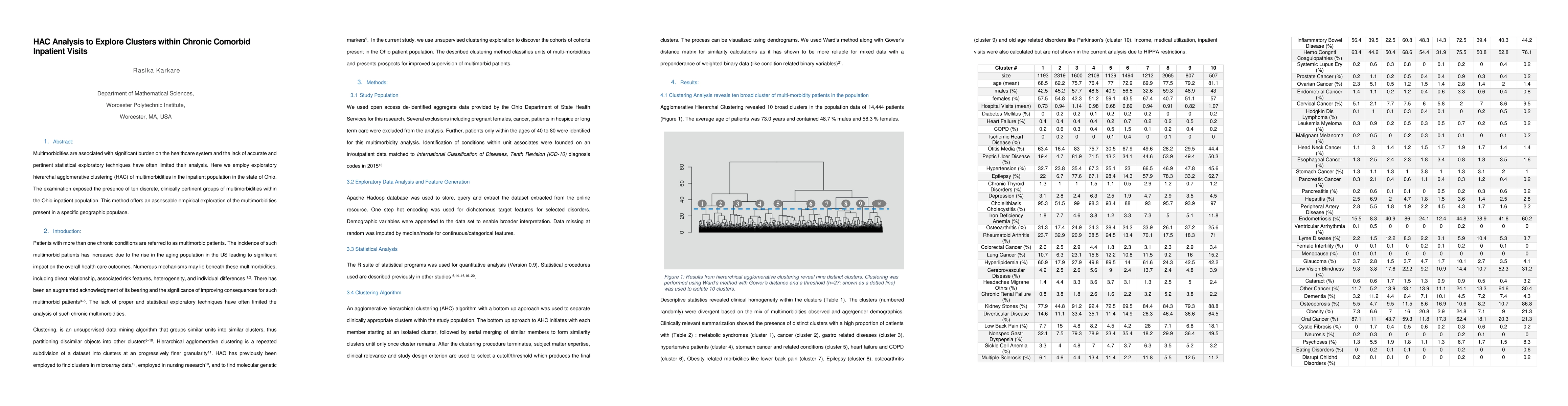This study uses hierarchical agglomerative clustering (HAC) to analyze multimorbidities among inpatients in Ohio, revealing ten distinct, clinically relevant groups. The method provides a valuable empirical approach for understanding multimorbidities within a specific geographic population.