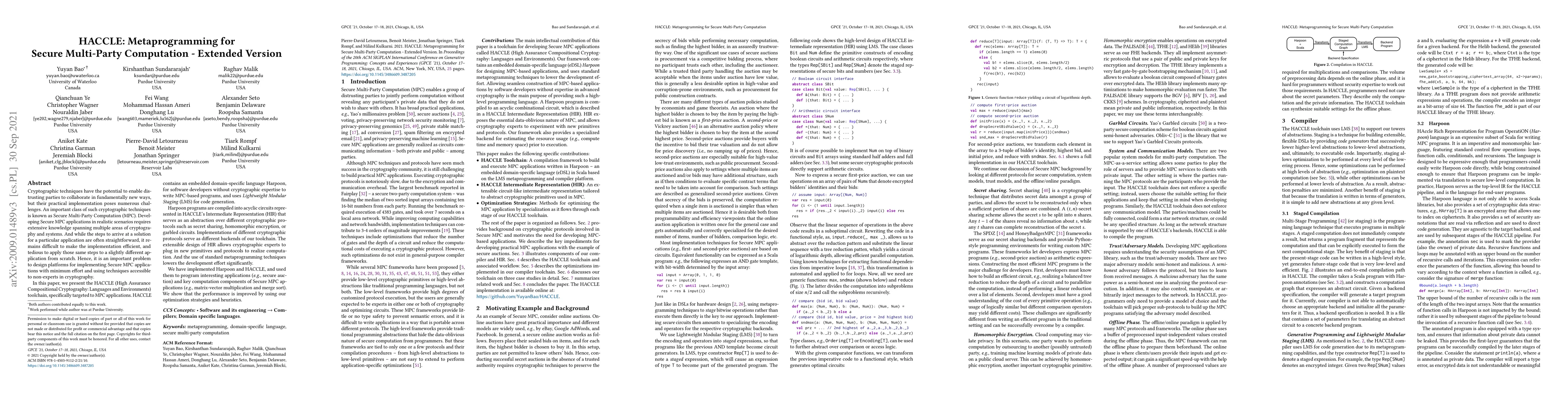 HACCLE is a toolchain for implementing Secure Multi-Party Computation applications with minimal effort, using a domain-specific language and metaprogramming techniques to enable non-experts in cryptography to develop MPC-based programs.