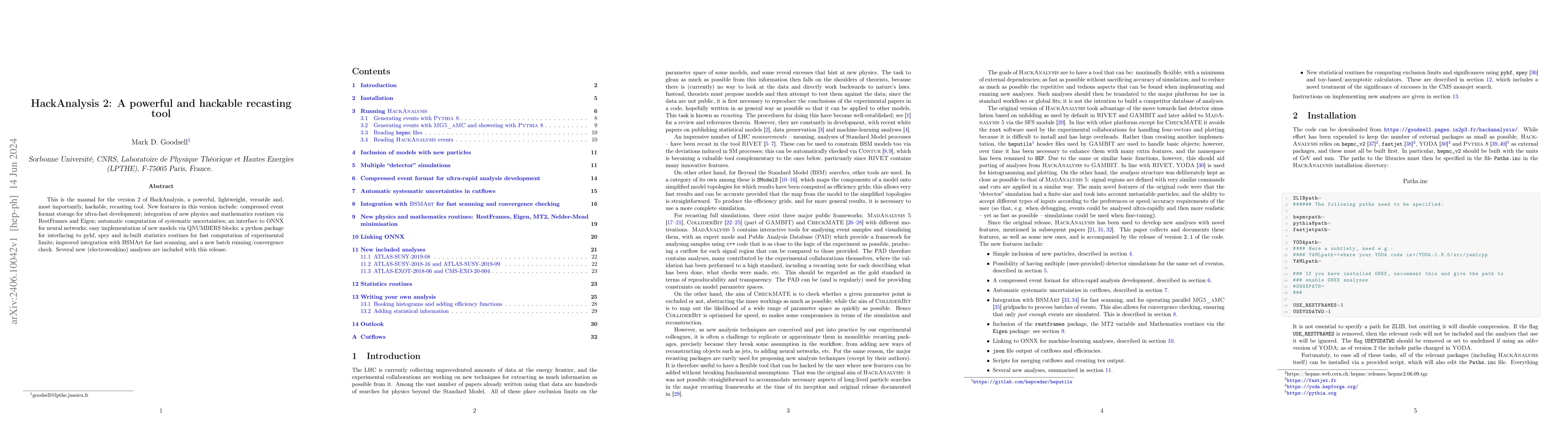 This is the manual for the version 2 of HackAnalysis, a powerful, lightweight, versatile and, most importantly, hackable, recasting tool. New features in this version include: compressed event format storage for ultra-fast development; integration of new physics and mathematics routines via RestFrames and Eigen; automatic computation of systematic uncertainties; an interface to ONNX for neural networks; easy implementation of new models via QNUMBERS blocks; a python package for interfacing to pyhf, spey and in-built statistics routines for fast computation of experimental limits; improved integration with BSMArt for fast scanning, and a new batch running/convergence check. Several new (electroweakino) analyses are included with this release.