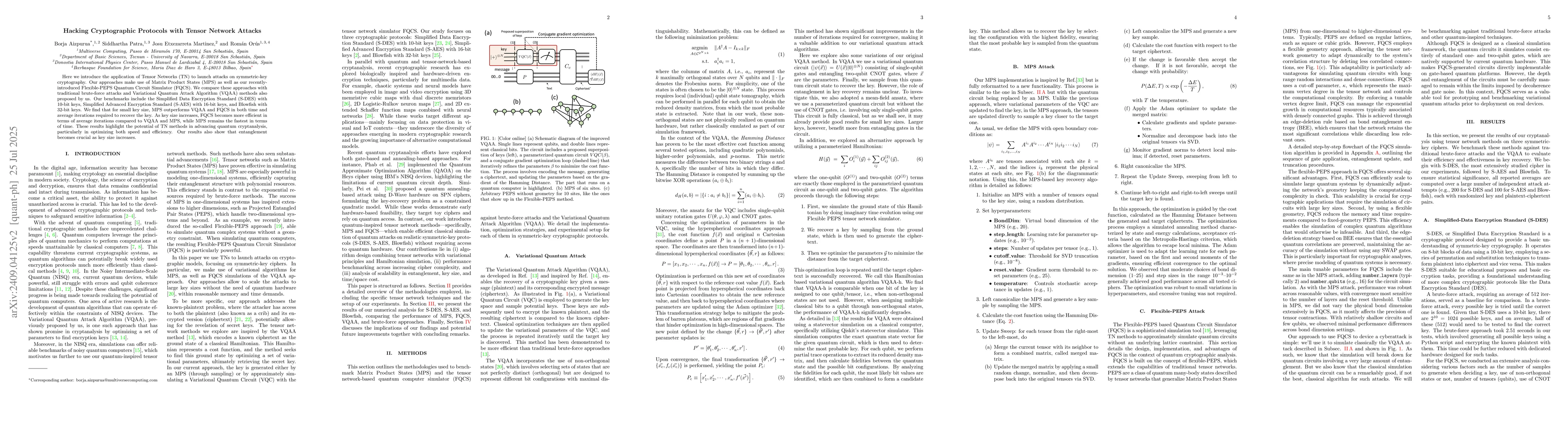 Here we introduce the application of Tensor Networks (TN) to launch attacks on symmetric-key cryptography. Our approaches make use of Matrix Product States (MPS) as well as our recently-introduced Flexible-PEPS Quantum Circuit Simulator (FQCS). We compare these approaches with traditional brute-force attacks and Variational Quantum Attack Algorithm (VQAA) methods also proposed by us. Our benchmarks include the Simplified Data Encryption Standard (S-DES) with 10-bit keys, Simplified Advanced Encryption Standard (S-AES) with 16-bit keys, and Blowfish with 32-bit keys. We find that for small key size, MPS outperforms VQAA and FQCS in both time and average iterations required to recover the key. As key size increases, FQCS becomes more efficient in terms of average iterations compared to VQAA and MPS, while MPS remains the fastest in terms of time. These results highlight the potential of TN methods in advancing quantum cryptanalysis, particularly in optimizing both speed and efficiency. Our results also show that entanglement becomes crucial as key size increases.