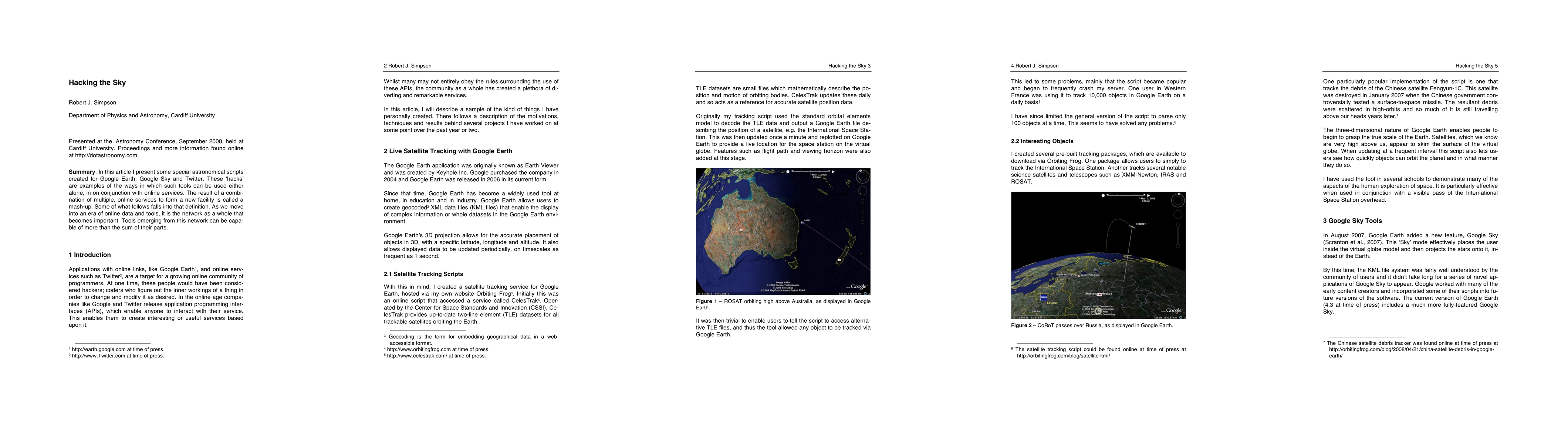 In this article I present some special astronomical scripts created for Google Earth, Google Sky and Twitter. These 'hacks' are examples of the ways in which such tools can be used either alone, in on conjunction with online services. The result of a combination of multiple, online services to form a new facility is called a mash-up. Some of what follows falls into that definition. As we move into an era of online data and tools, it is the network as a whole that becomes important. Tools emerging from this network can be capable of more than the sum of their parts.