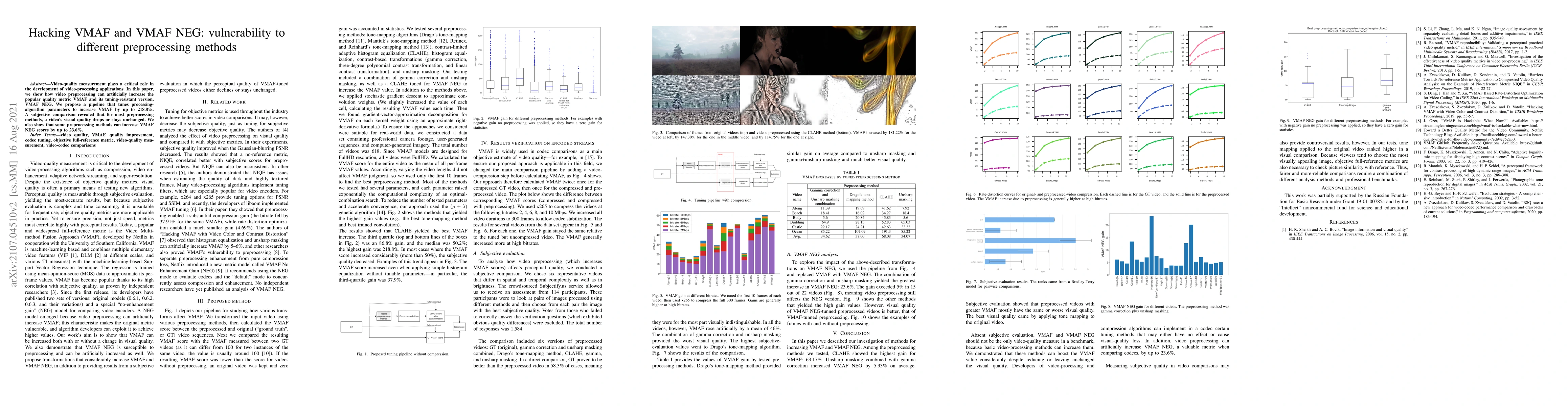 This paper demonstrates that video preprocessing can significantly boost VMAF and VMAF NEG scores, up to 218.8% and 23.6% respectively, despite often degrading visual quality. The study proposes a method to tune preprocessing algorithms for improved VMAF scores.