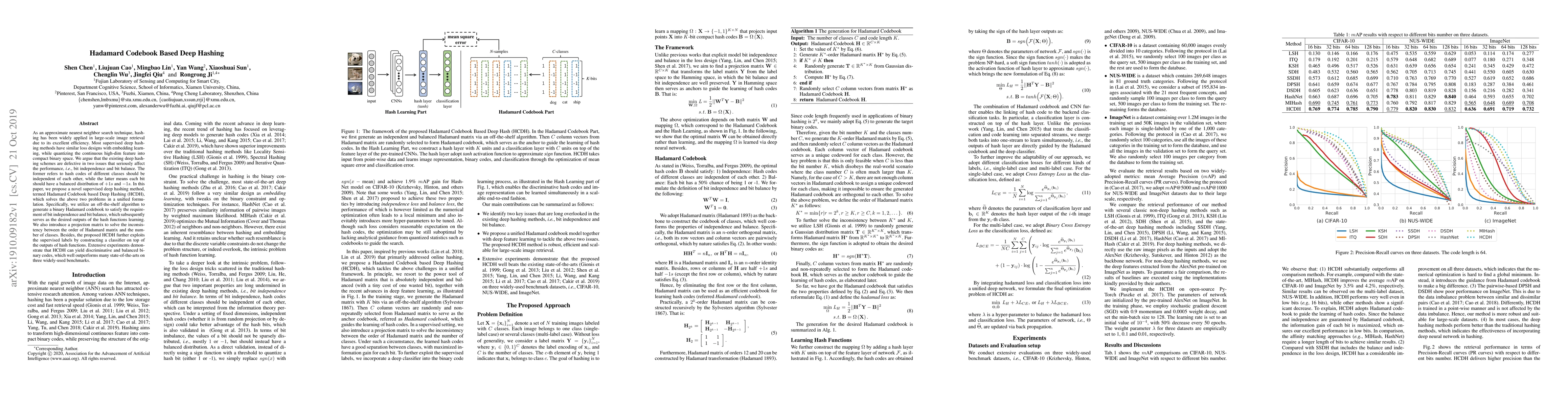 The paper proposes a novel supervised deep hashing method called Hadamard Codebook based Deep Hashing (HCDH) to address issues of bit independence and bit balance in existing deep hashing schemes. HCDH utilizes a binary Hadamard codebook to generate discriminative and balanced hash codes, and outperforms state-of-the-art methods on large-scale image retrieval tasks.