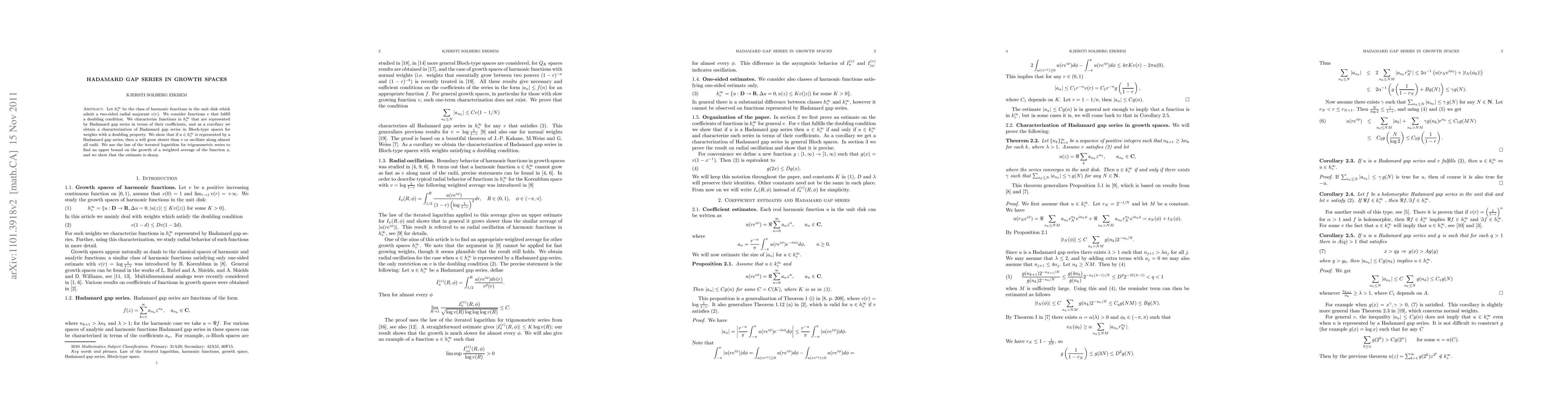 This paper characterizes harmonic functions in growth spaces $h^\infty_v$ that can be represented by Hadamard gap series, showing they grow slower than $v$ or oscillate along almost all radii. It also establishes a sharp upper bound on the growth of a weighted average of such functions using the law of the iterated logarithm.