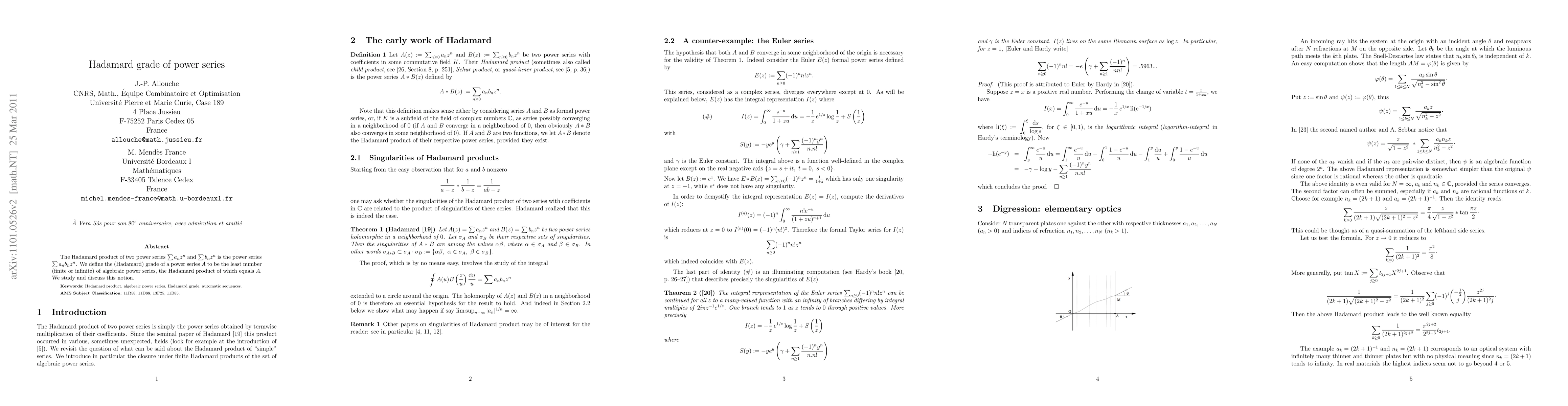 The paper defines the Hadamard grade of a power series as the least number of algebraic power series whose product equals the original series, exploring its properties and implications.