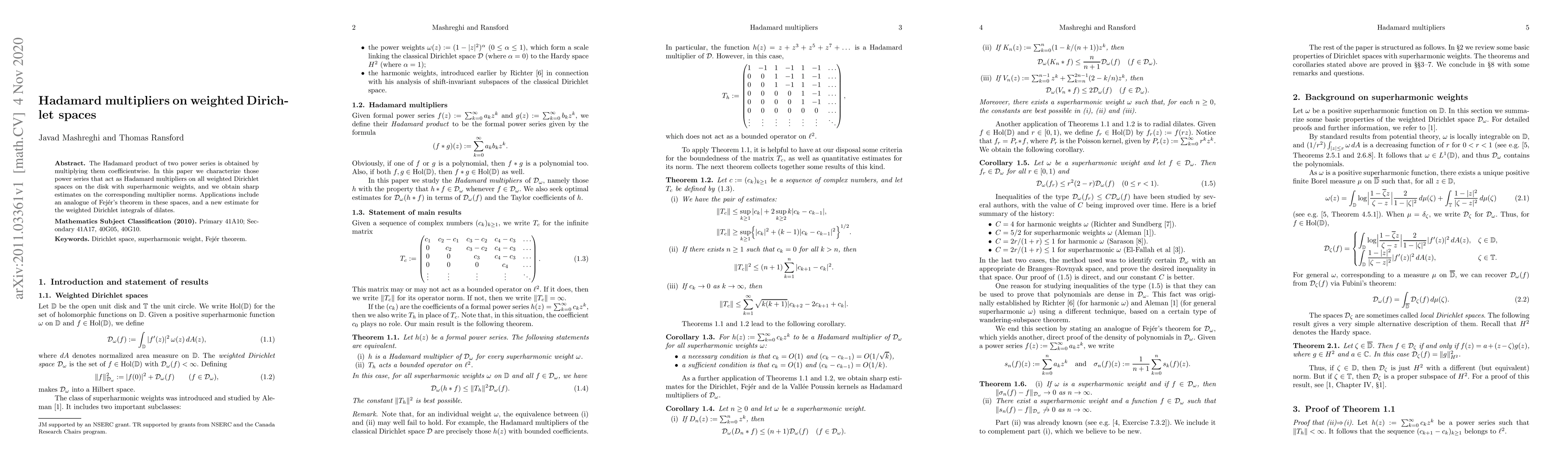 This paper characterizes power series that serve as Hadamard multipliers on weighted Dirichlet spaces on the disk, providing sharp estimates for their multiplier norms and applications including an analogue of Fejér's theorem and new estimates for weighted Dirichlet integrals of dilates.