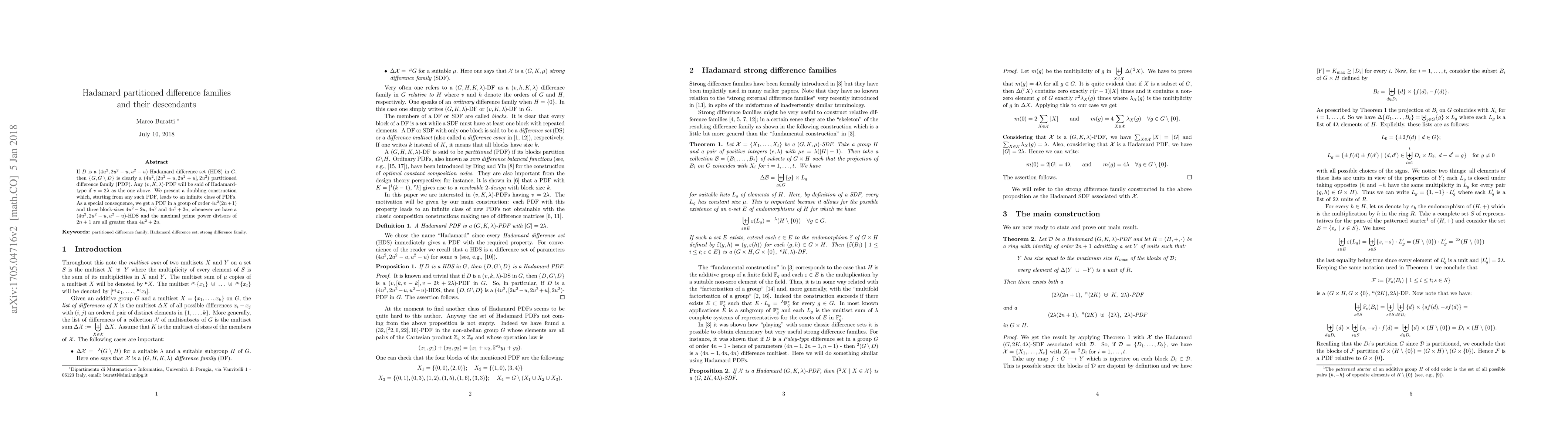 If $D$ is a $(4u^2,2u^2-u,u^2-u)$ Hadamard difference set (HDS) in $G$, then $\{G,G\setminus D\}$ is clearly a $(4u^2,[2u^2-u,2u^2+u],2u^2)$ partitioned difference family (PDF). Any $(v,K,\lambda)$-PDF will be said of Hadamard-type if $v=2\lambda$ as the one above. We present a doubling construction which, starting from any such PDF, leads to an infinite class of PDFs. As a special consequence, we get a PDF in a group of order $4u^2(2n+1)$ and three block-sizes $4u^2-2u$, $4u^2$ and $4u^2+2u$, whenever we have a $(4u^2,2u^2-u,u^2-u)$-HDS and the maximal prime power divisors of $2n+1$ are all greater than $4u^2+2u$.