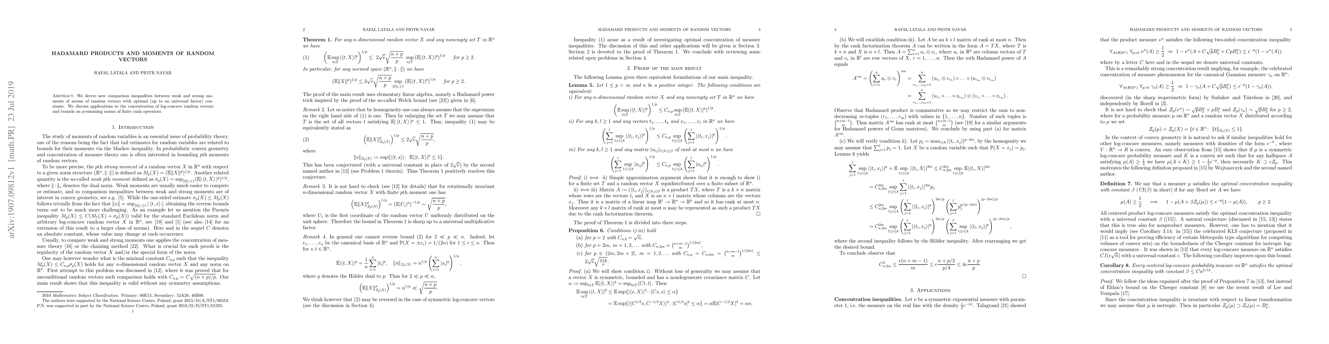 We derive new comparison inequalities between weak and strong moments of norms of random vectors with optimal (up to an universal factor) constants. We discuss applications to the concentration of log-concave random vectors and bounds on $p$-summing norms of finite rank operators.