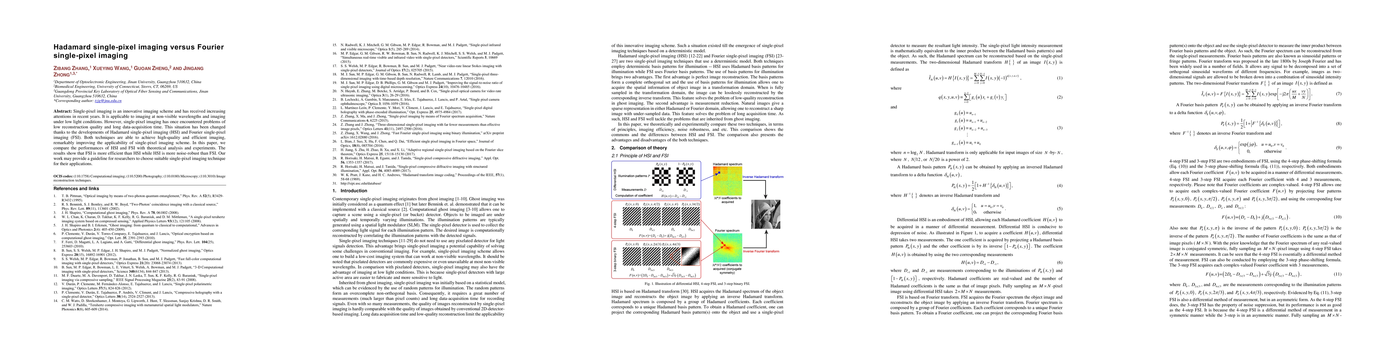 This paper compares Hadamard single-pixel imaging (HSI) and Fourier single-pixel imaging (FSI) through theoretical analysis and experiments, finding FSI to be more efficient but HSI more robust to noise. The study aims to guide researchers in selecting the appropriate single-pixel imaging technique for their specific applications.