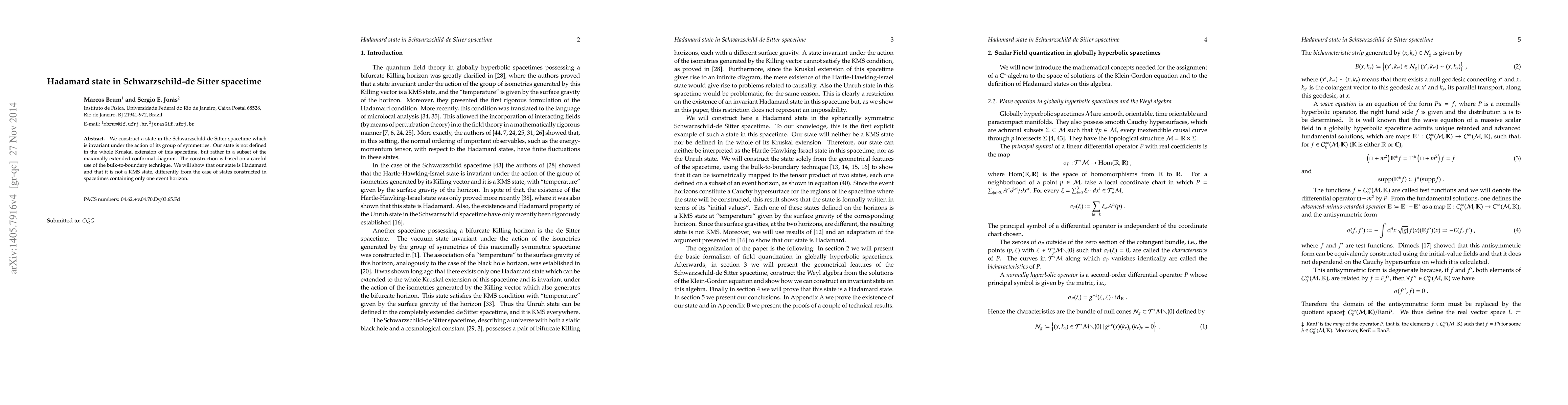 We construct a state in the Schwarzschild-de Sitter spacetime which is invariant under the action of its group of symmetries. Our state is not defined in the whole Kruskal extension of this spacetime, but rather in a subset of the maximally extended conformal diagram. The construction is based on a careful use of the bulk-to-boundary technique. We will show that our state is Hadamard and that it is not a KMS state, differently from the case of states constructed in spacetimes containing only one event horizon.