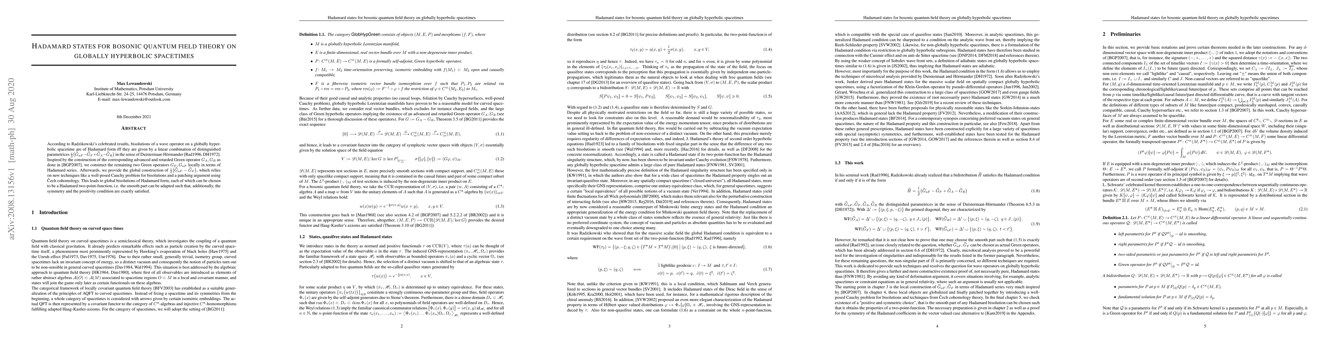 This paper constructs bisolutions of a wave operator on globally hyperbolic spacetimes in the form of Hadamard states using advanced and retarded Green operators, extending the results of Radzikowski. It introduces a global construction for specific Hadamard series and employs novel techniques to satisfy symmetry and positivity conditions.